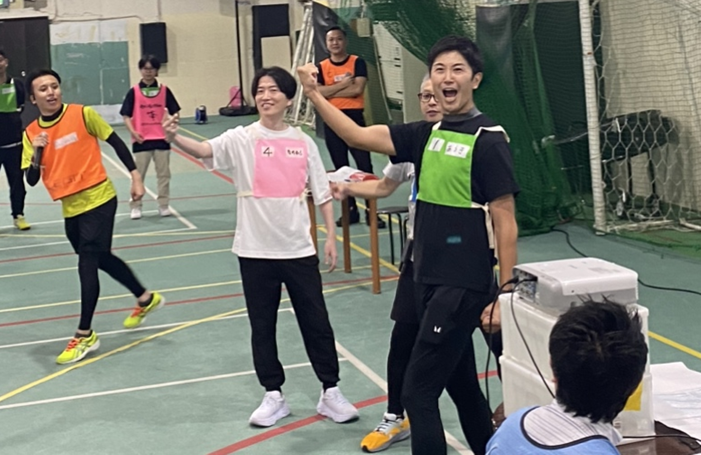 会場では緑チームの指揮をとり、チームを鼓舞する荒木社長の姿も!