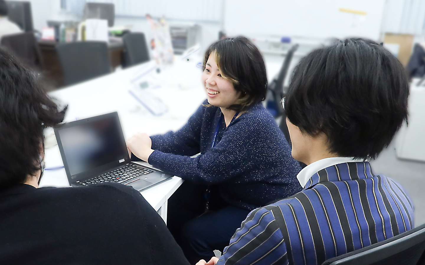 Kさん:向いている人〜。これもどんな業務に携わるかにもよると思いますが、クライアント様からの抽象的なイメージ、アイデアを具体化するのが得意な方や、新しいことを取り入れていく、挑戦するのが好きな方に向いているかと思います。