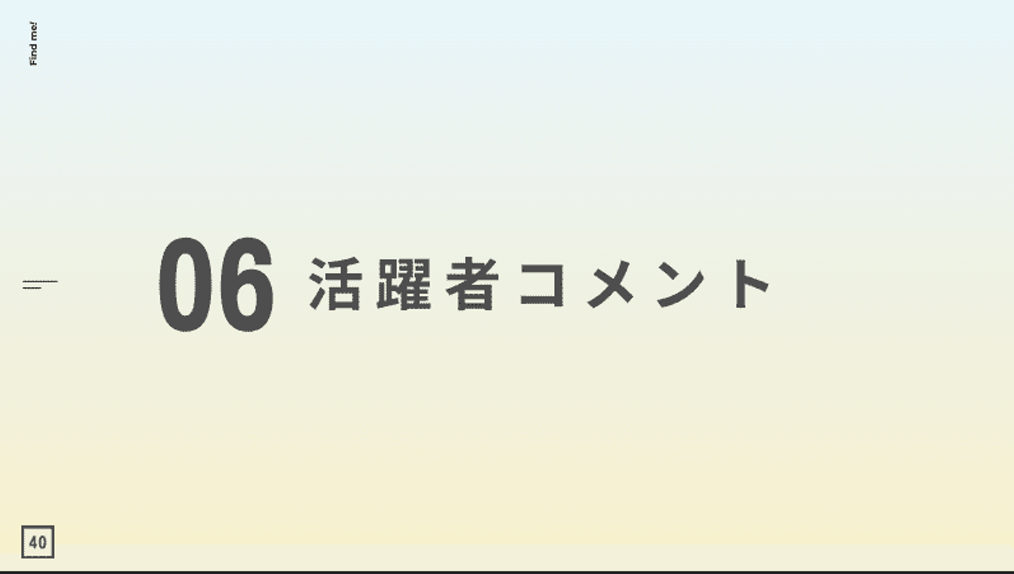 今後は、メンバーへ全社会議に対するアンケートを実施したり、会議ツールにおいて、コメントやリアクション機能の導入を行うなど、参加者側もより参加意識を持てる会議を目指していきたいと思います。