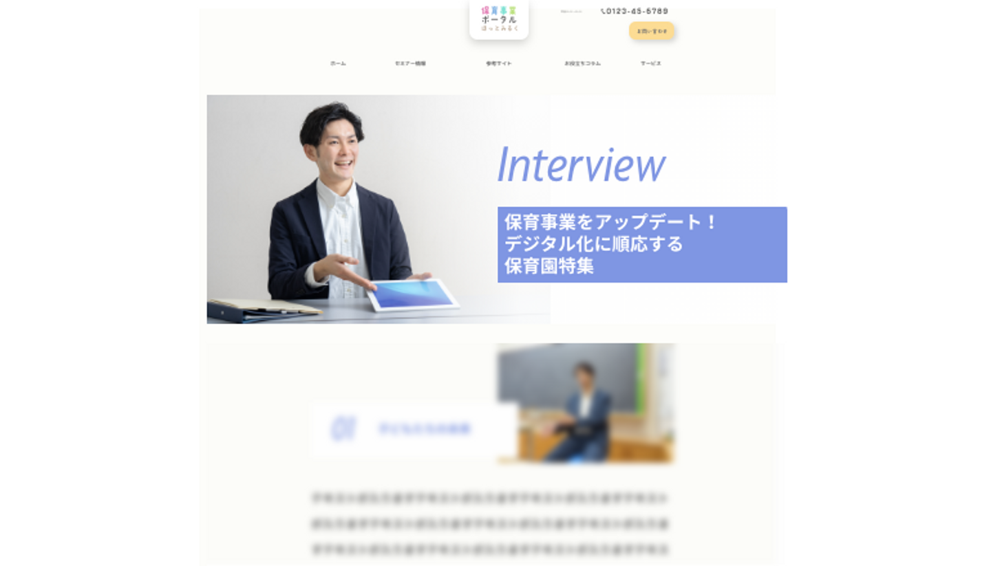 保育業界に特化したセミナー情報や運営に役立つコラムコンテンツ、日本全国の魅力的な発信を行なっているホームページ参考事例などを掲載し、保育事業に従事している方へ有益な情報配信を行っています。
