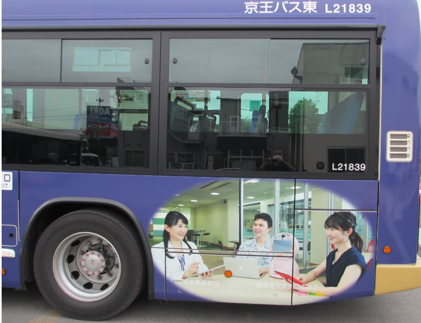 電気通信大学と京王電鉄の結びつきも強くなったことで、広報担当副学長に就任してから以前から夢だった大学のラッピングバスも実現しました。
