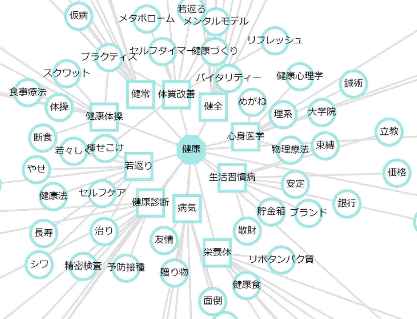 同じ「健康」という言葉から連想される言葉でも年代が違うだけでこれだけ変わってきます。