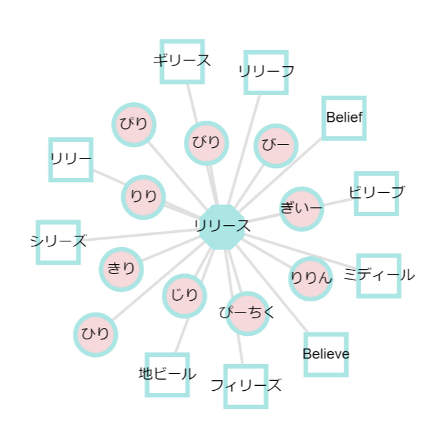 今回は新機能のリリースだったので、「リリース」と入力するとこのような出力がされます。音の印象の近いオノマトペまで出すのは感性AIならではだと思います。