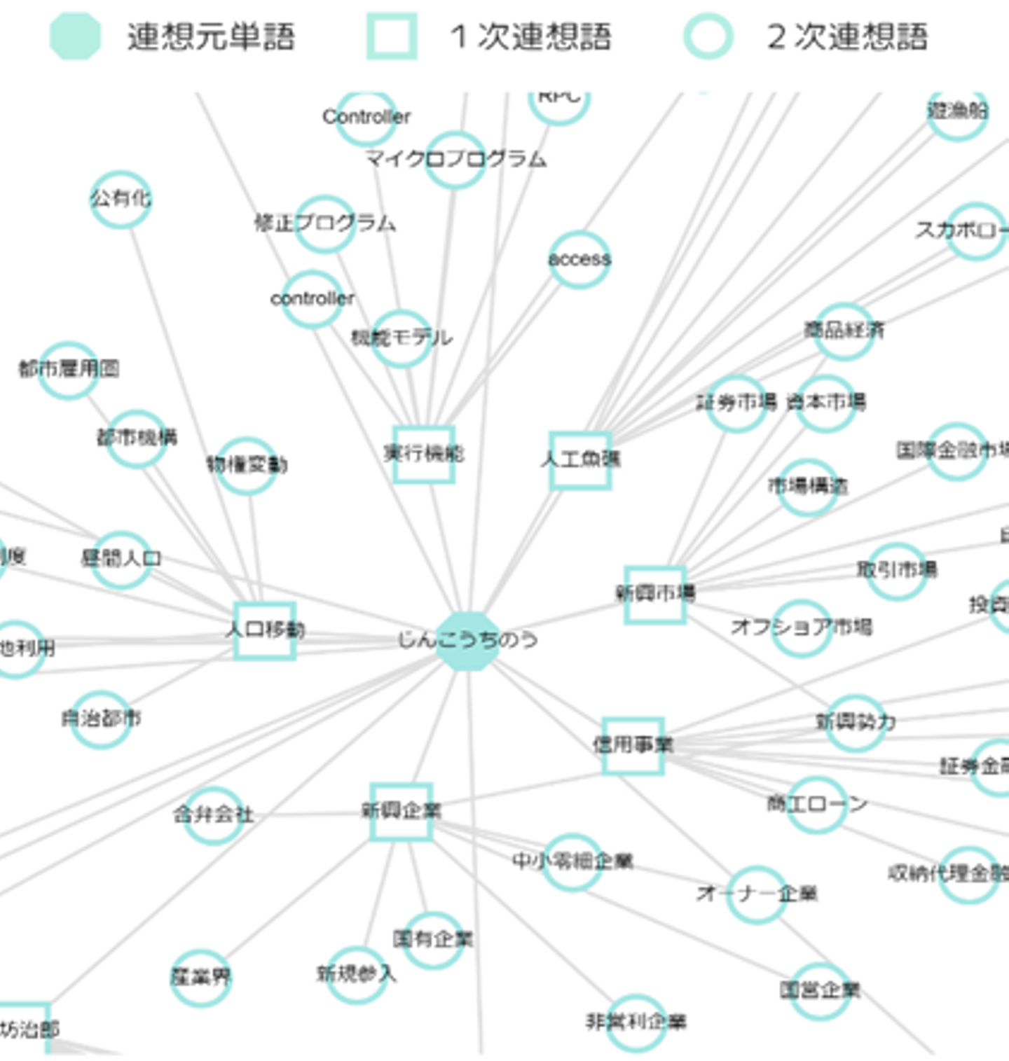 今回のバージョンアップでは、従来の独自AI言語モデルのブラッシュアップに加え、ChatGPTとの連携をおこなうことで、高性能な連想語出力を実現しました。