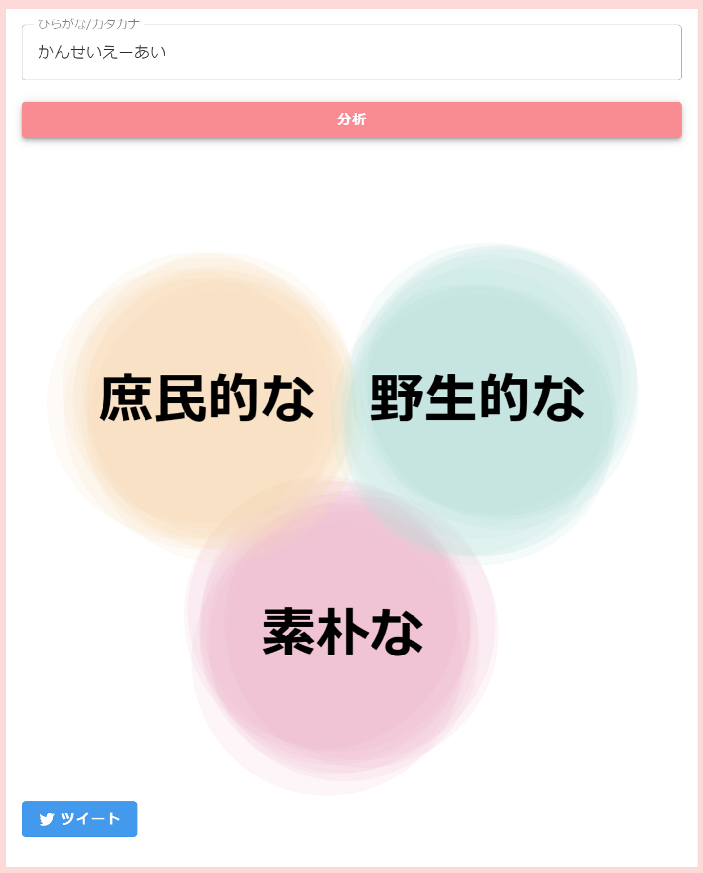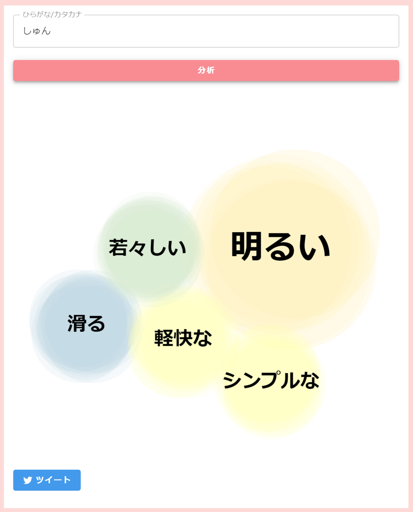 この音韻診断では、言葉を入力するだけで、その言葉の印象の特徴を見ることができます。