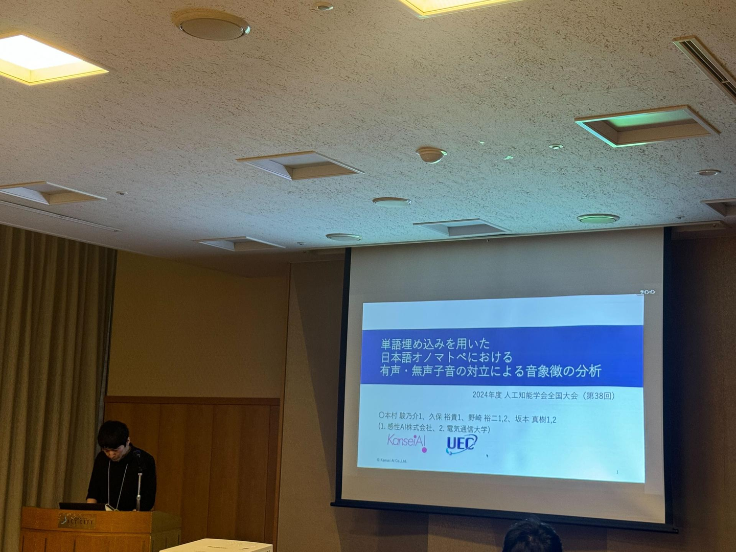 「単語埋め込みを用いた日本語オノマトペにおける有声・無声子音の対立による音象徴の分析」というテーマで論文発表をしました。