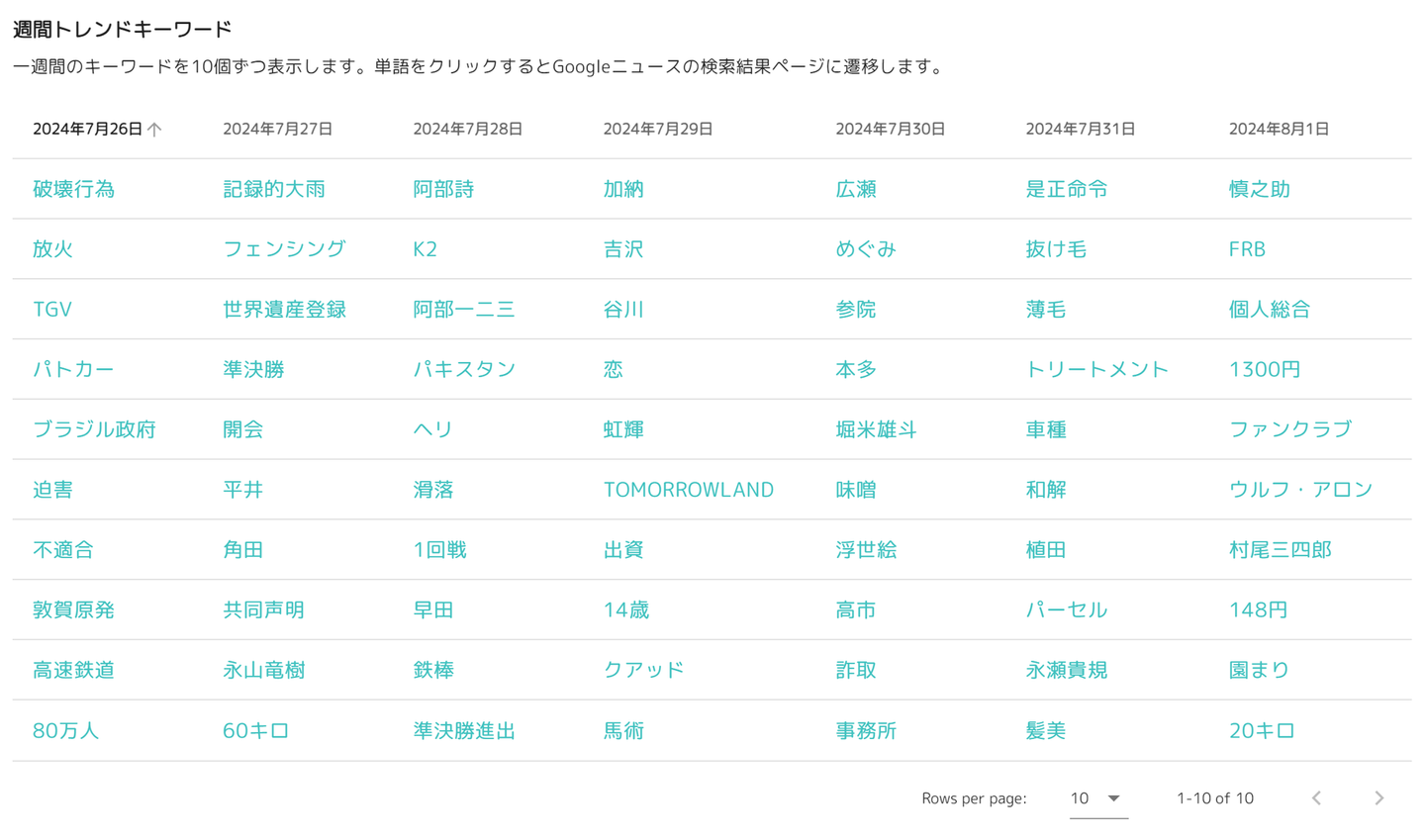 週間トレンドキーワードを出すこともできます。