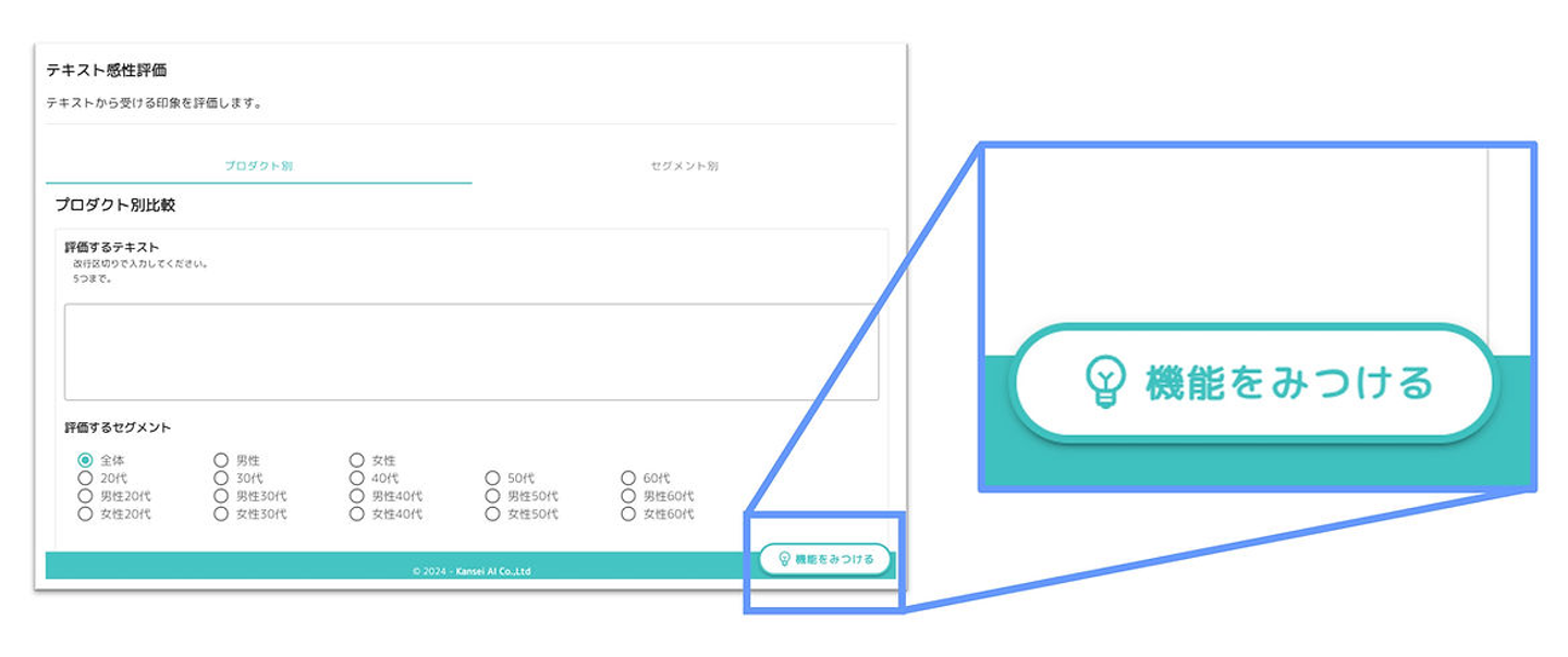 さらに感性評価機能に機能をみつけるボタンを追加しました!
