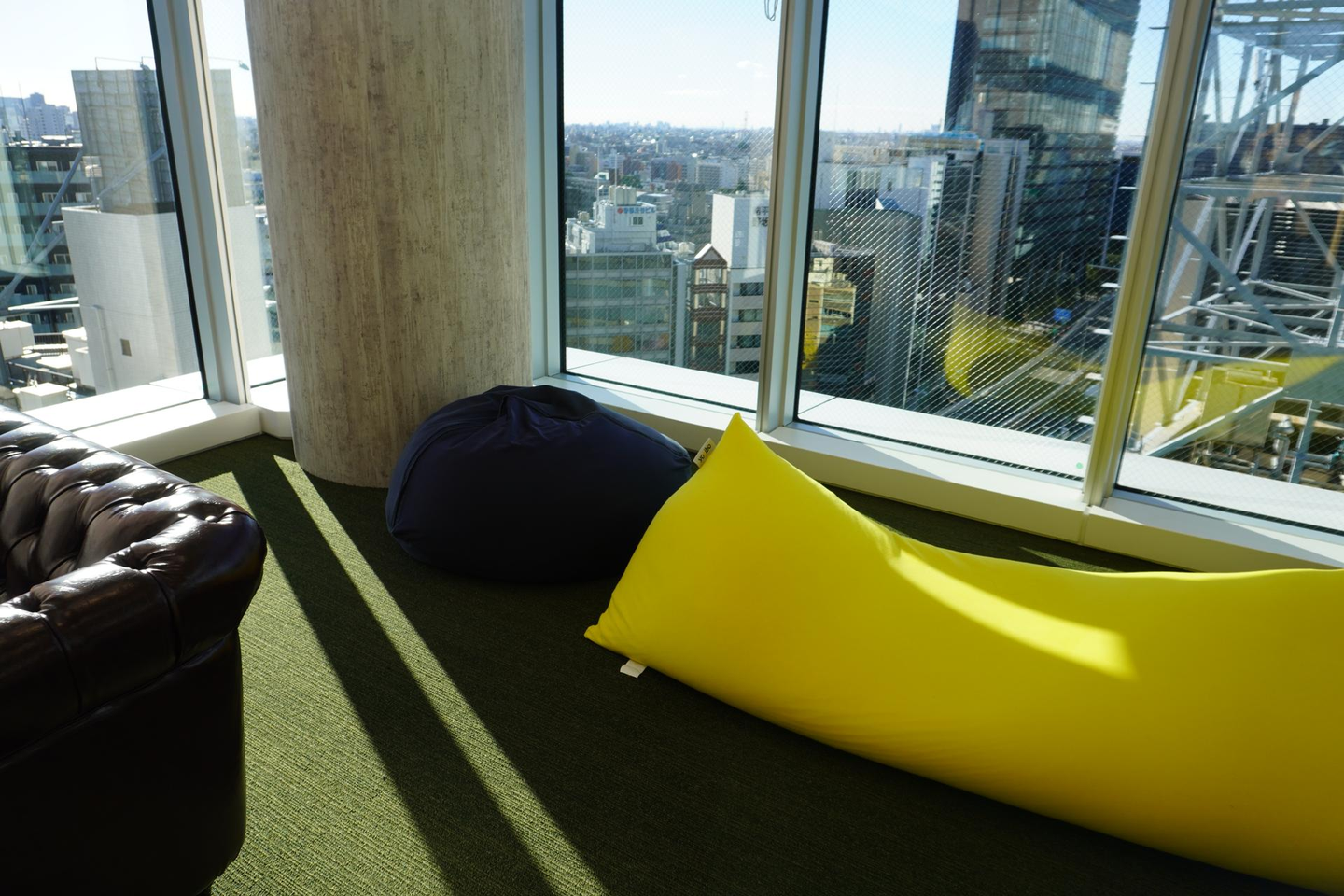渋谷感満載です。イベントができるように小さなステージやモニターもあります!執務室は開放感があり、110名着席可能です!飲食自由なバーカウンターや前のオフィスで評判だったプレイルームにはyogiboがあります。仕事の合間に、少し昼寝をしてリフレッシュできちゃいます。