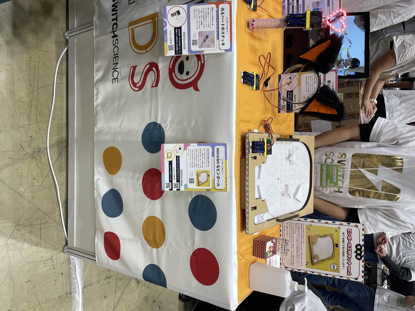 スイッチサイエンスが展示していた「ピンボール工作キット」は、事前に組み立てしやすいダンボールの部品でピンボールの筐体を作成し、micro:bitを使用して小学生でも簡単にプログラミングできるようになっています。これにより、モノづくりとプログラミングを同時に楽しむことができる素晴らしい製品だと感じました。