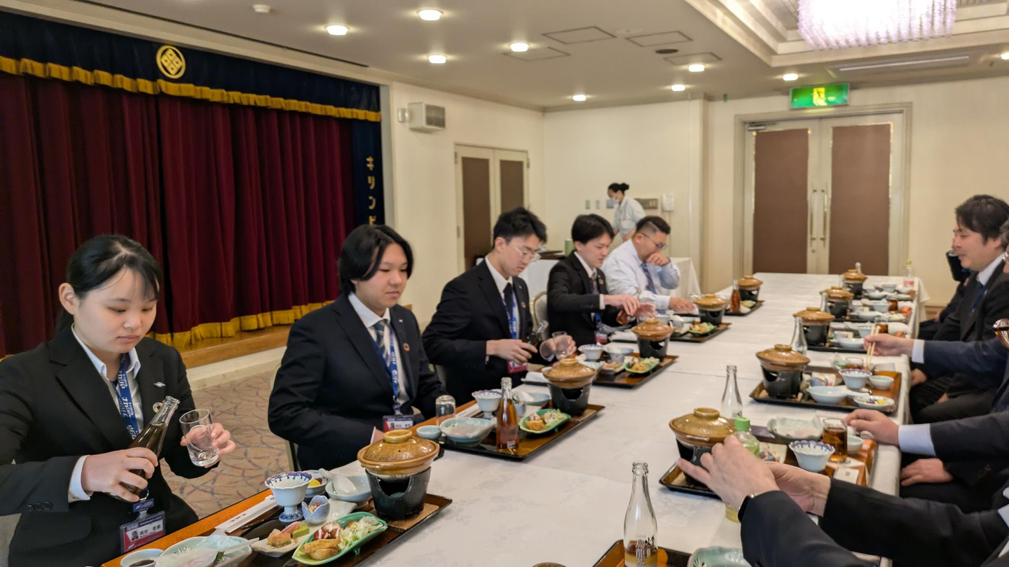 老舗旅館での食事、目の前には役員や幹部メンバーがずらり…