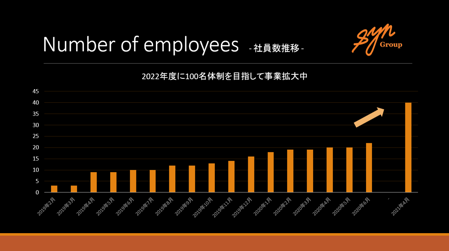 有我) 業界にインパクトを与えるためにも、まずは2022年度に100名組織を目指しています。