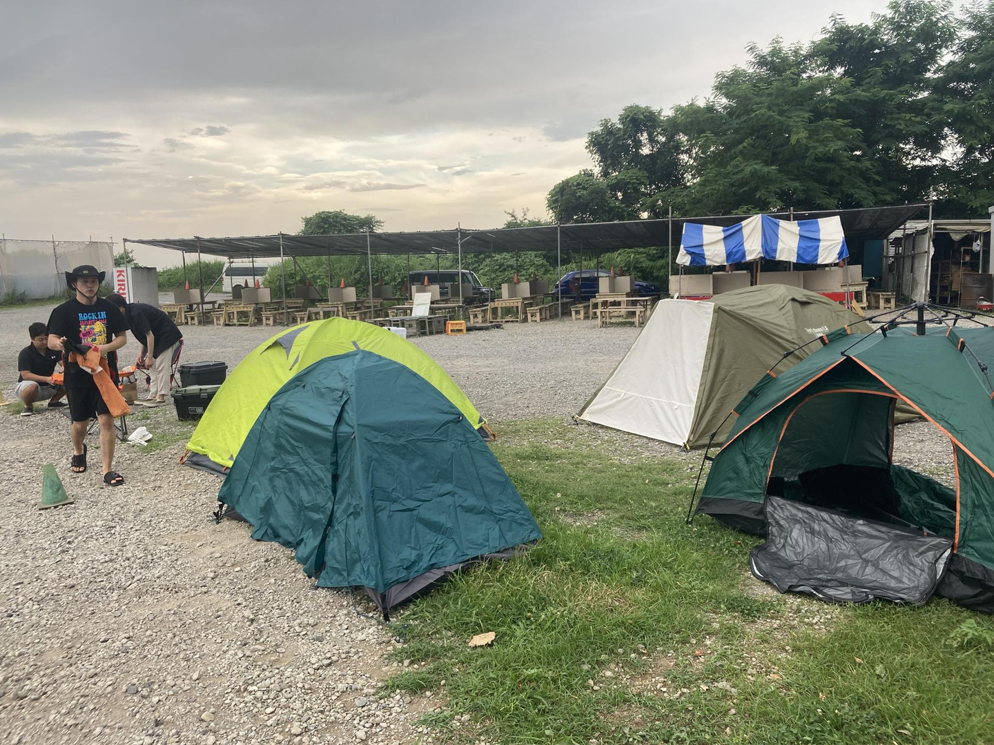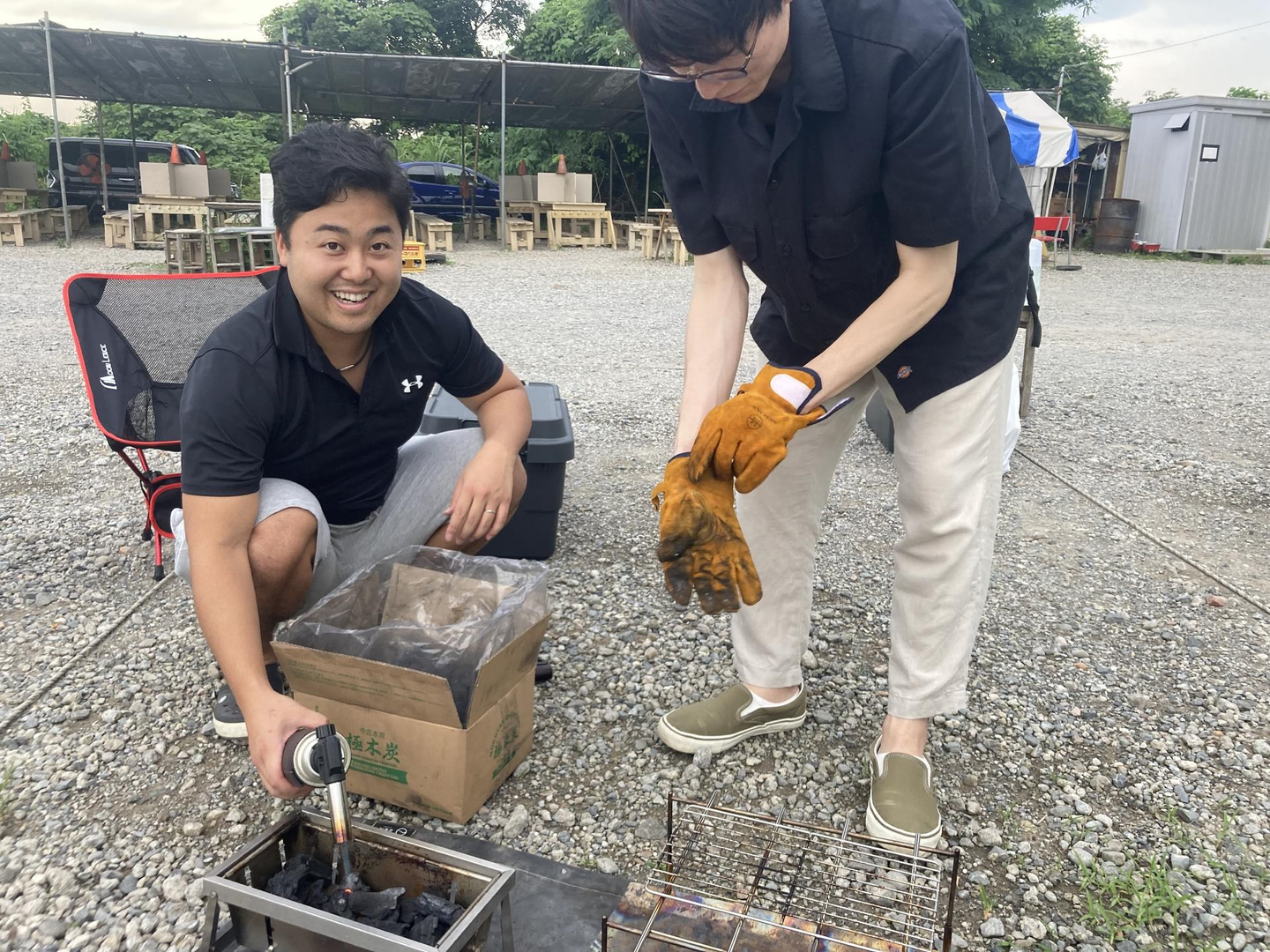 私ともう1名はキャンプ用具は持っていないので、みんなのテントやBBQ用具などのセッティング。