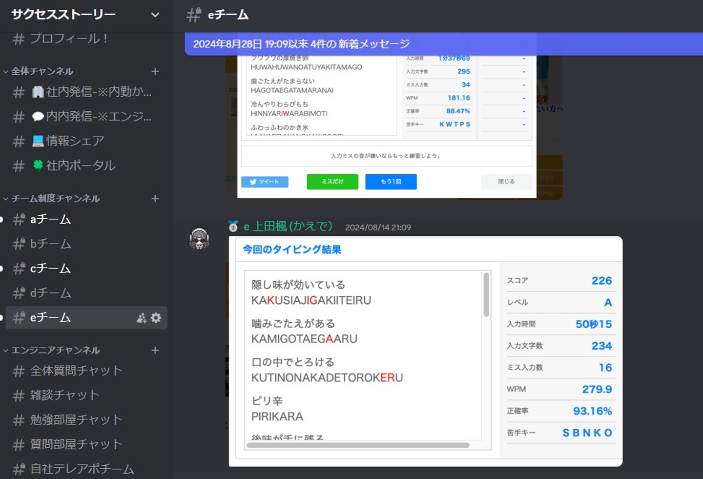 下の画像は、チーム対抗でタイピングテストのスコアを競っていたときのものです!