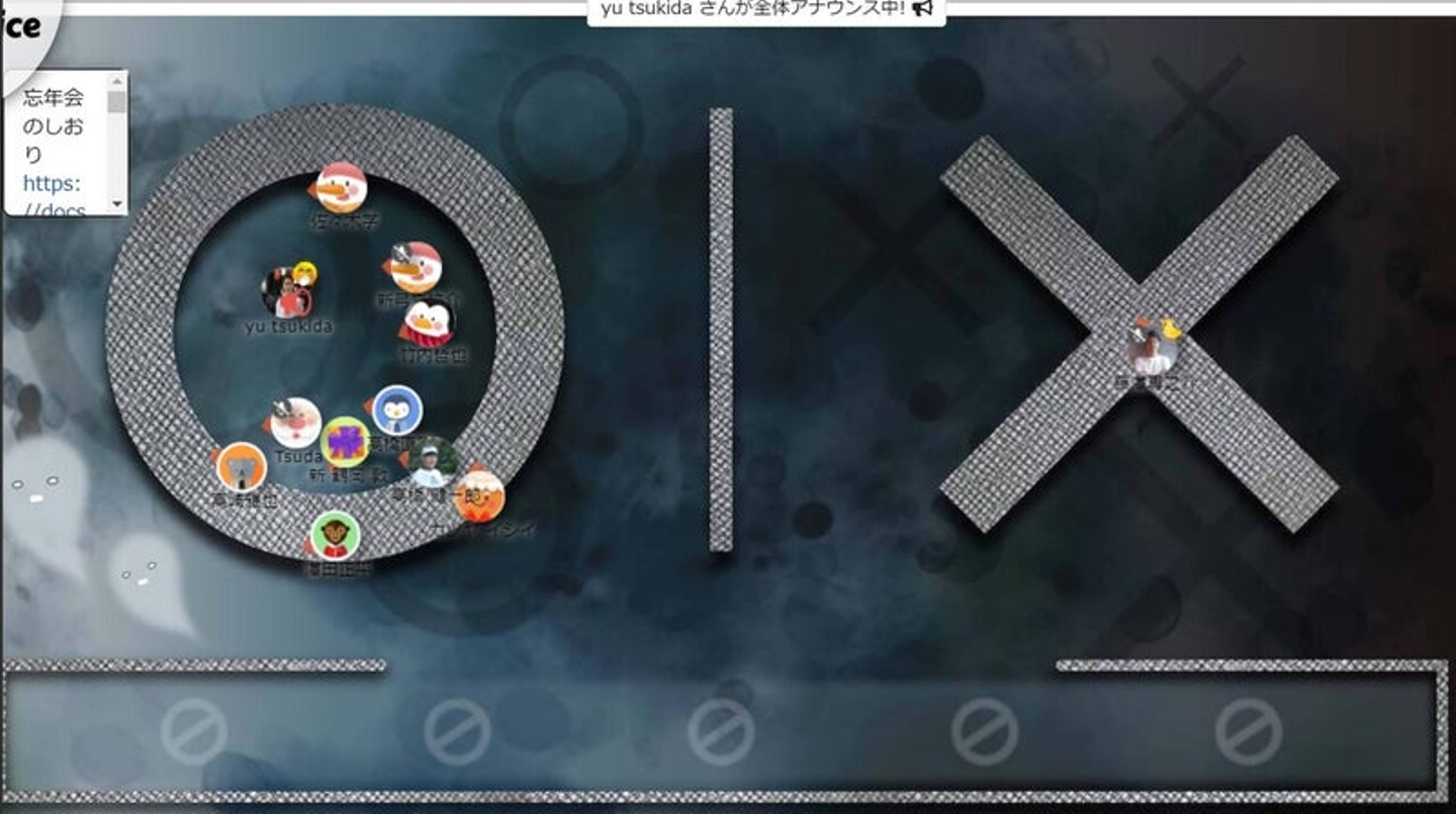 oViceが初めてのメンバーもいたので、最初は〇×ゲームをしながら操作になれる…というところから始めました。