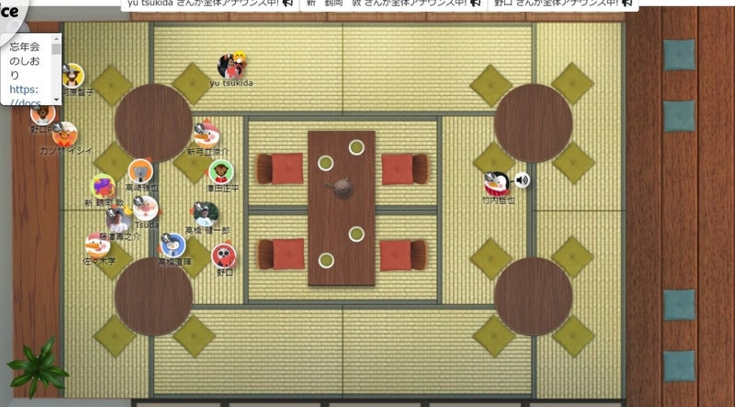 日本全国どこからでも参加できるように普段は業務で利用しているバーチャルオフィス「oVice」を舞台に、普段関わりの薄いメンバー同士が会話できるような場になりました。