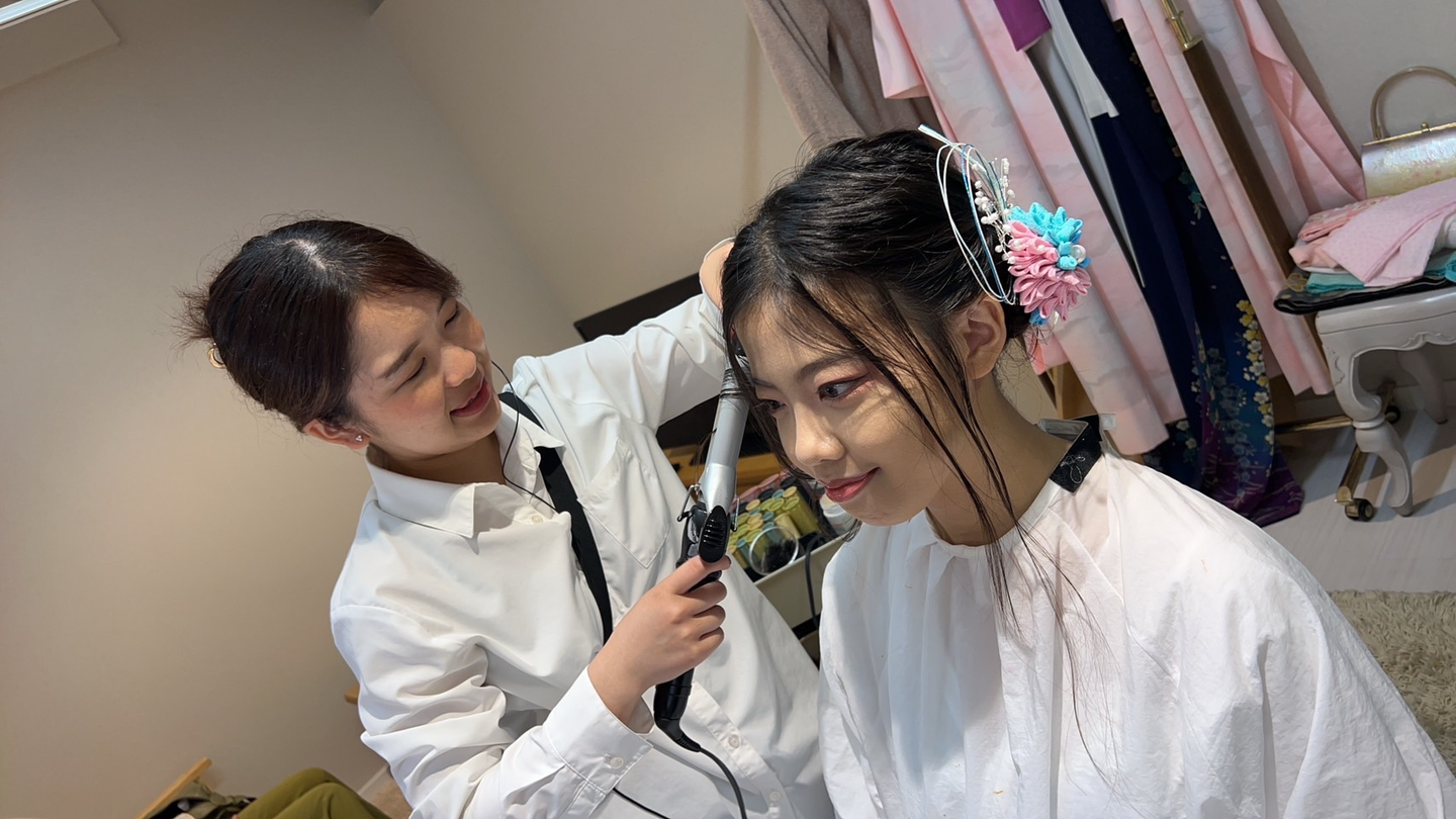 仕事内容としてはヘアメイク着付などの美容に関する事とお客様へのプラン説明や撮影のアシスタントなど幅広く仕事を行う事が出来ます。美容だけではなくいろいろな知識が身に付きますので日々新しい発見がありとても楽しいです!
