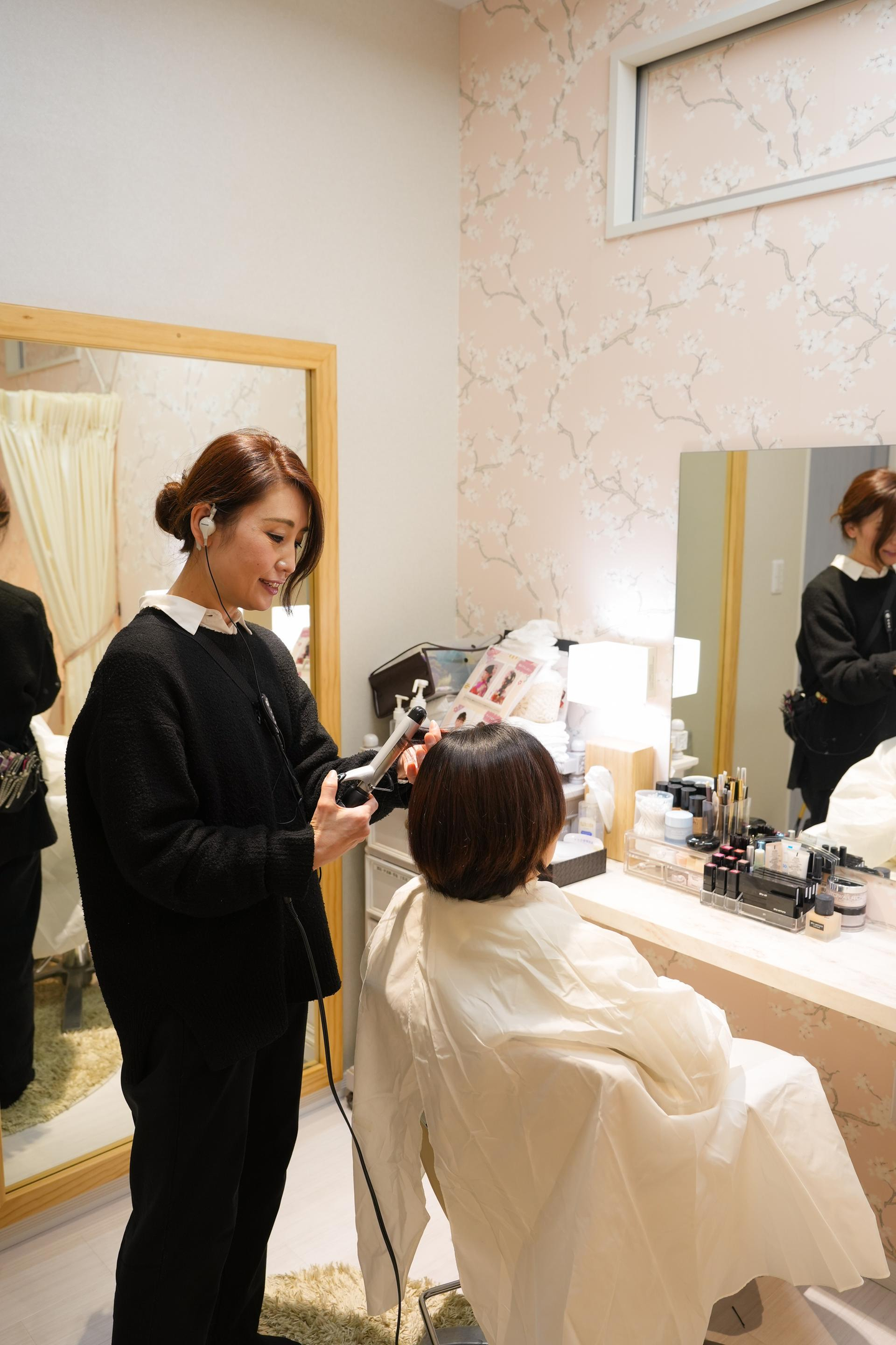 お宮参りからブライダルまで、全てのヘアメイク着付けと、お衣裳のご案内をしています。また、ヘアメイク着付け後、そのまま撮影のアシスタントに入ることもあります。お客様とご一緒させて頂く時間が他のスタッフよりも長い為、お客様と深く関わることができ、より信頼していただくことが出来ます。成人式前撮りのご指名をいただいたり、成人式後にお礼のメールなど頂くこともあり、心温まるお仕事です。