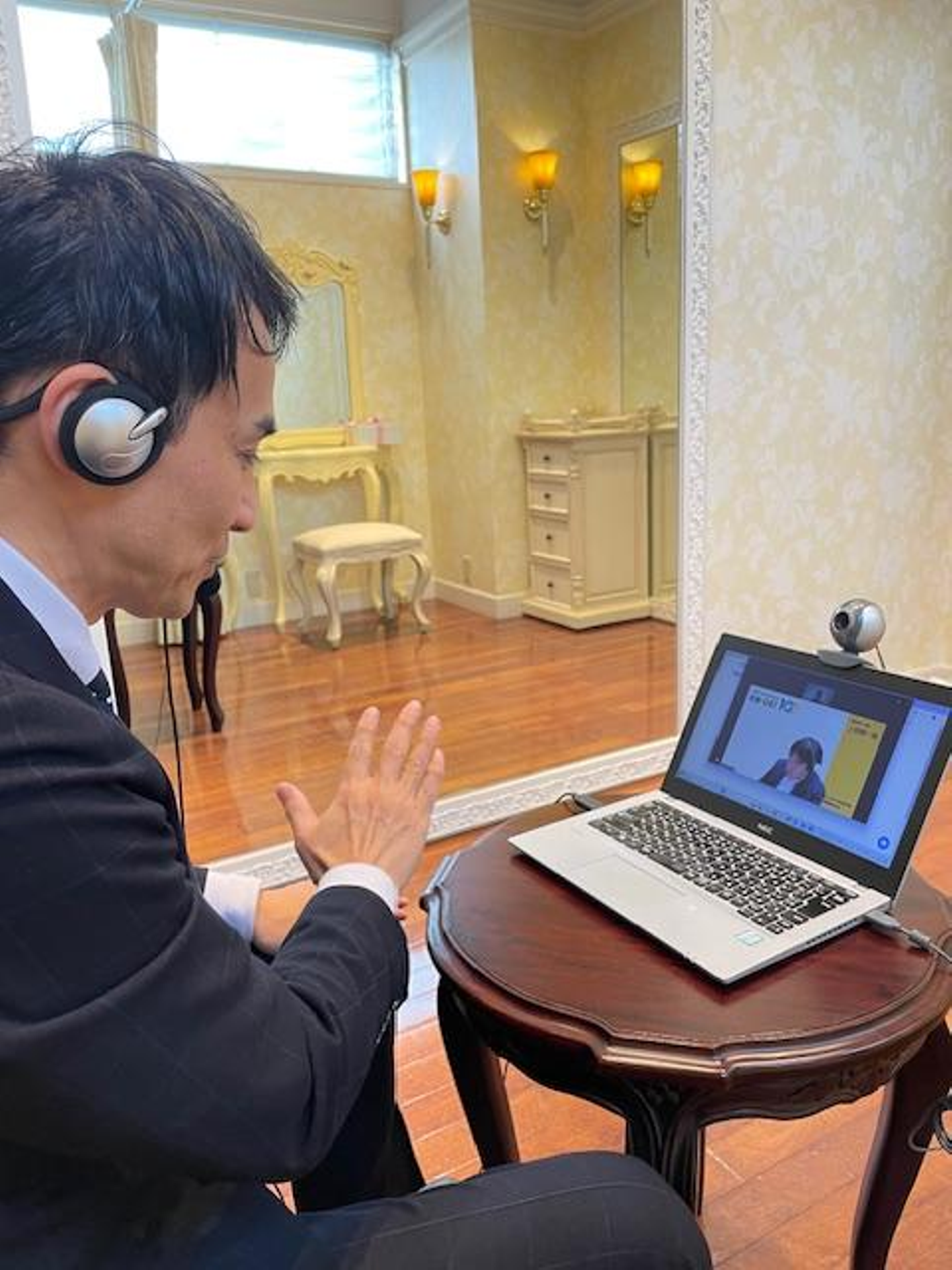 リモートで教授と繋がっています。たくさんお話が出来ました。👆