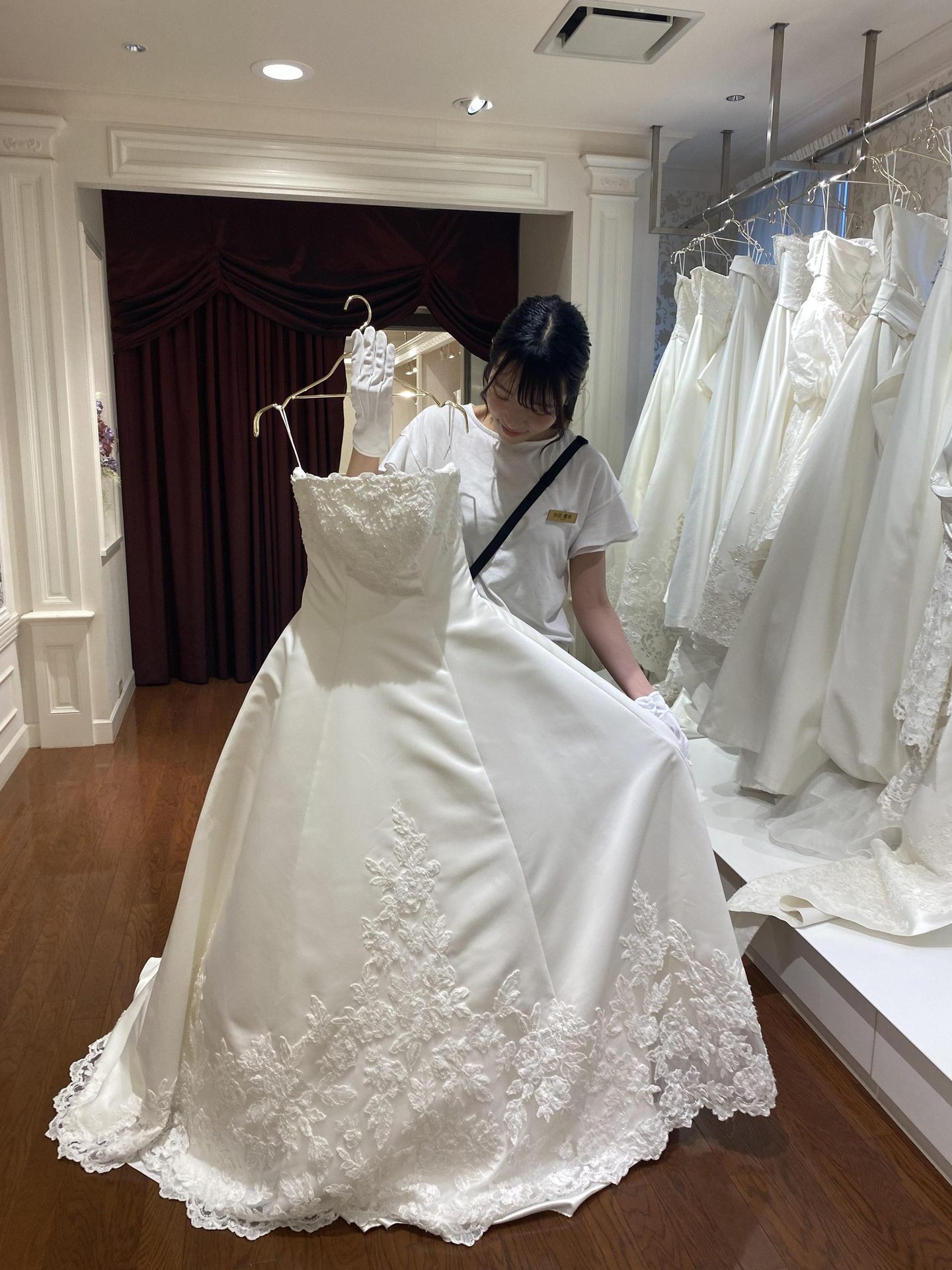 時間内にお客様が満足できるようなドレスをご案内することです。お客様に満足して帰っていただくには、ドレスの可愛さだけではなく、気持ちの良い接客が必要だと感じています。ドレスの試着はかなり体力を使います。事前準備をしっかりして、お客様に長くて大変と感じさせないよう、スムーズに進めていきたいです。