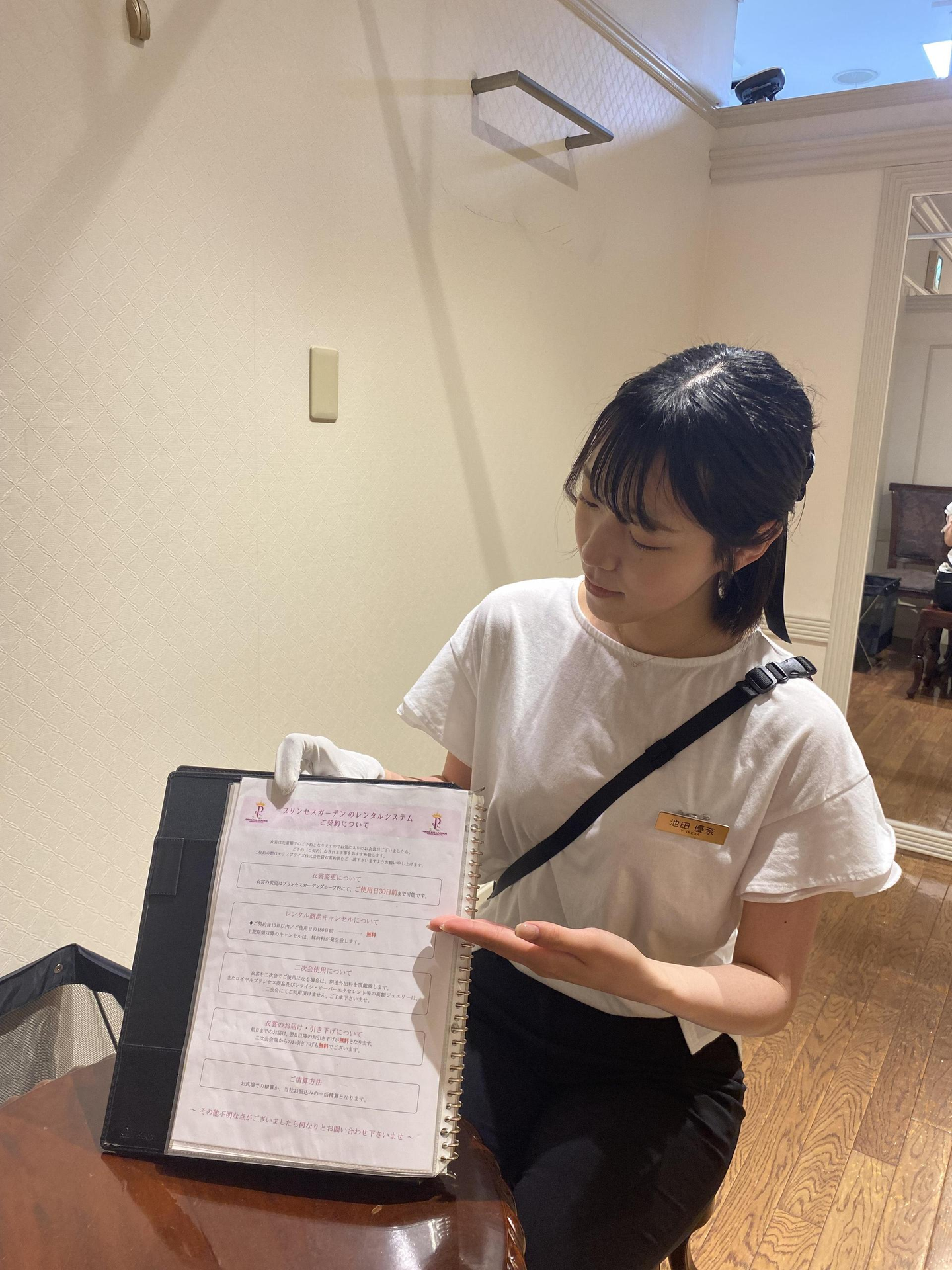 池田優奈と申します。北陸地方出身の22歳です。大学は国公立大学を卒業しており、主に芸術を学んでいました。趣味はおしゃれをすることで、お休みの日は服を見に出かけることが多いです。常に流行はチェックしているので、ドレスを紹介する点でも役立っています。