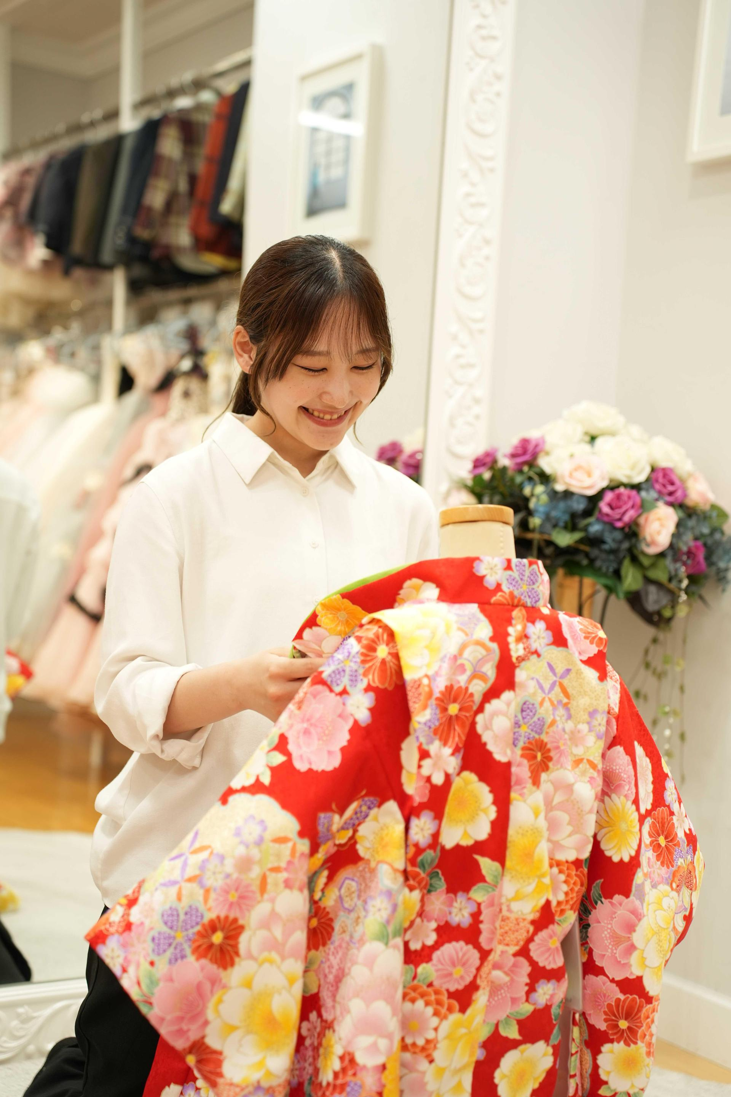 成人とブライダルの施行を一人で出来るようになることです。またお客様に「またここで撮影したい」と思ってもらえるような接客をしていきたいです。