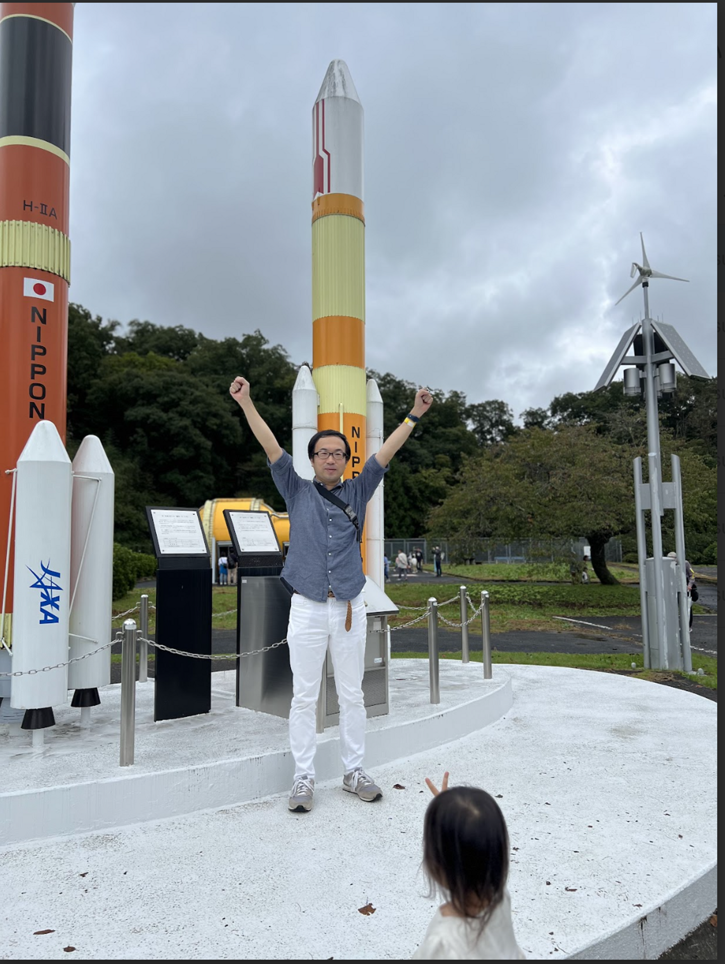▲宮城県にあるJAXA角田宇宙センターにて。手前でピースをしているのは娘さん