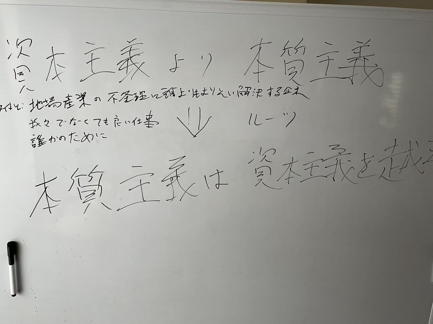様々な意見が出た中で、私たちが辿り着いた答えは、メンバーの斉藤晃久さんから出た「資本主義より本質主義」という言葉です。