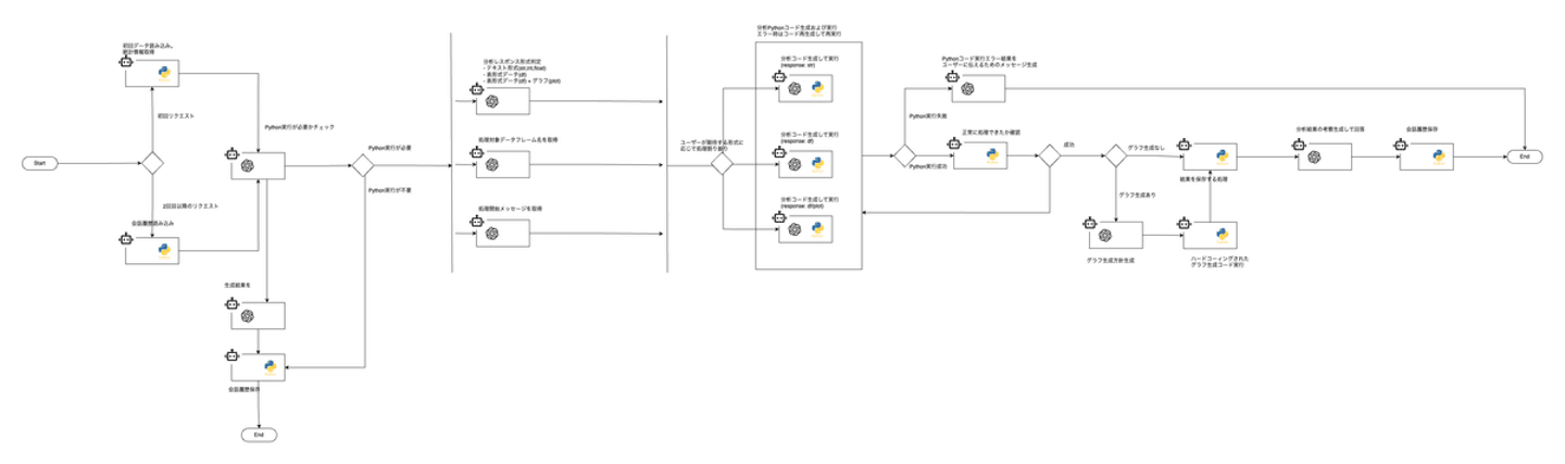その為、本格的なアップデート開発のタイミングには、クレンジングや特徴量生成などのデータ加工機能の追加も視野に入れており、システム内でのタスク量が膨大になることが予想されました。そこでアシスタントからエージェント主体に大きく舵を切り、複数のAIエージェントを活用したマルチエージェント設計に取り組むことにしました。