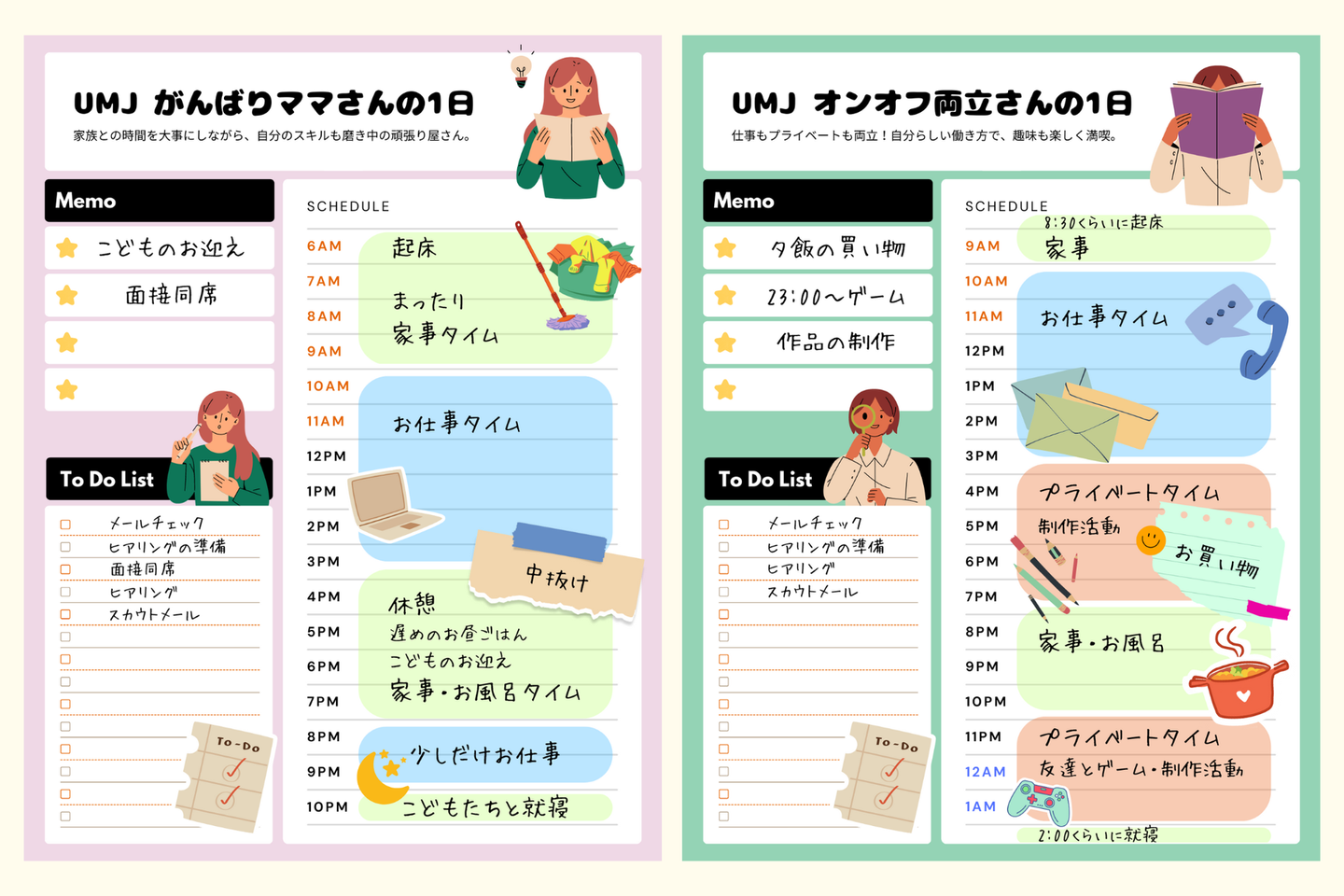 1日のモデルスケジュールをイラスト化してくれたことで、解像度が上がりましたよね。