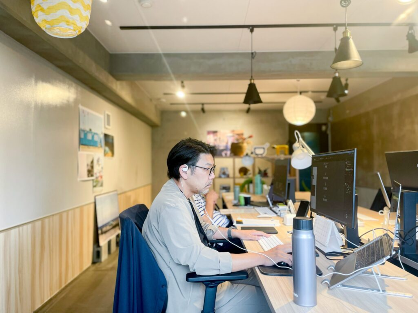 私たちはそんな環境の中、営業ルームと制作ルームの2部屋を借りており、制作ルームでは独立したクリエイティブな環境で、デザイナーやディレクターが在籍しています。