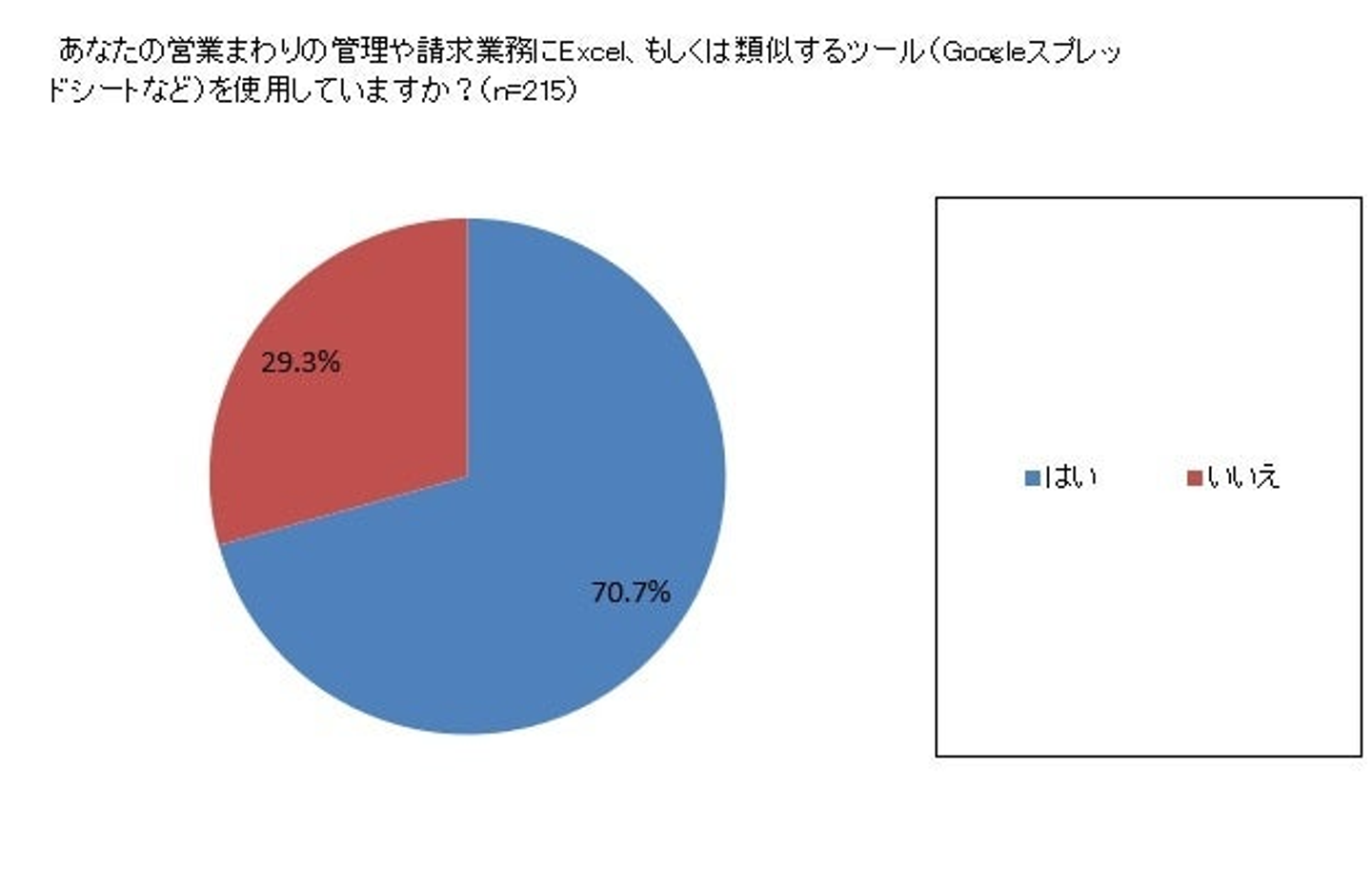 約7割が営業まわりの管理や請求業務にExcel、 もしくは類似するツールを使用していると回答