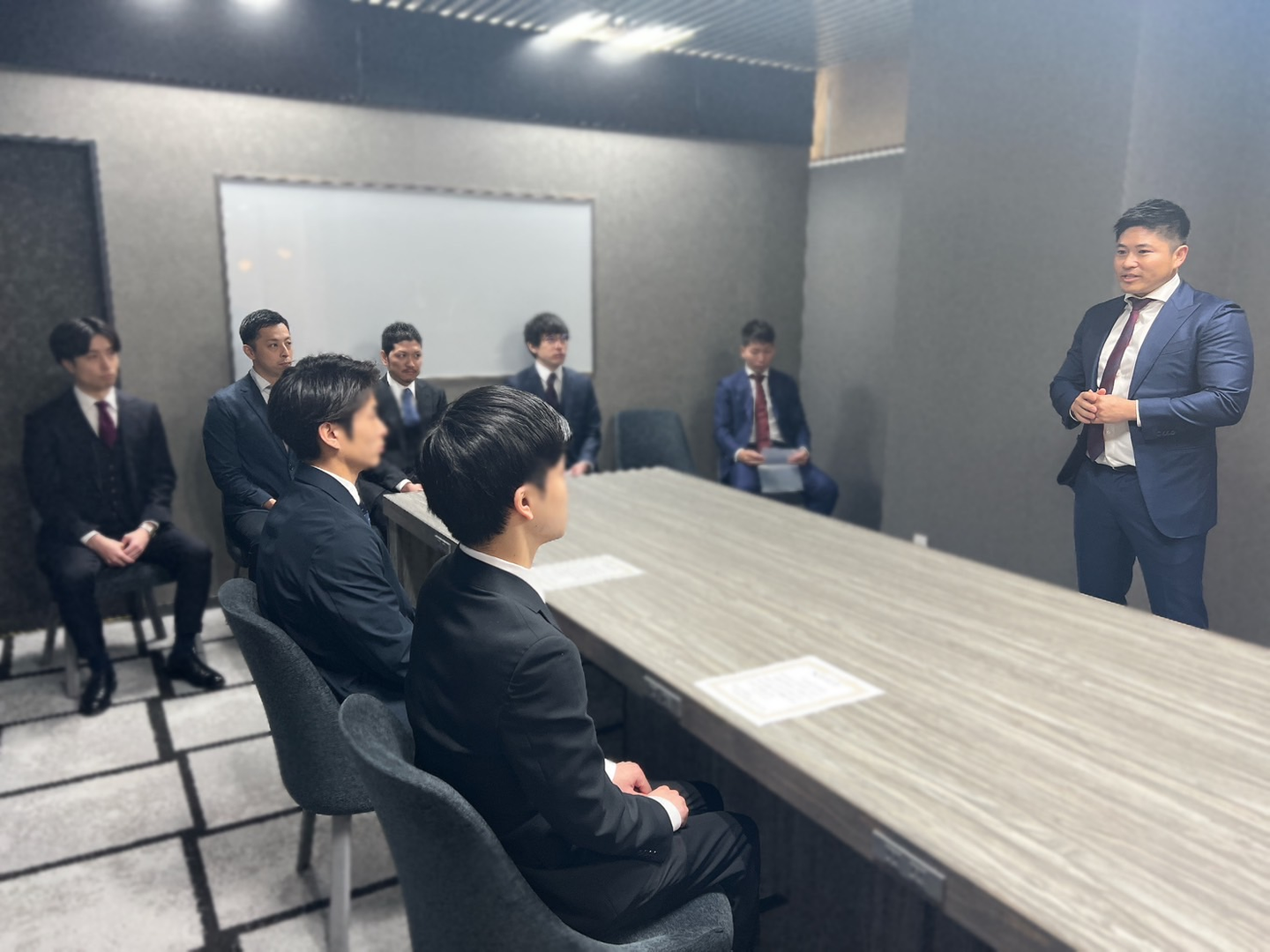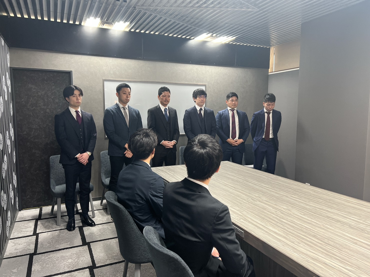 LiNewでは服装の指定がないため普段は各々自由な服装ですが、入社式では皆さんビシっと決めたスーツ姿でした!