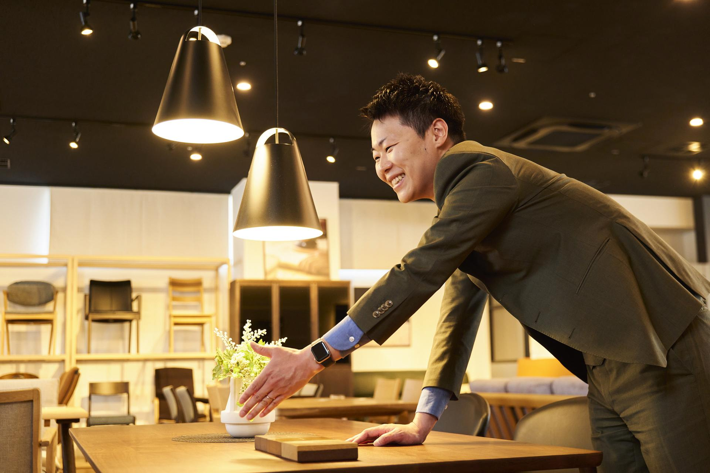 「100 万円超の家具は“モノ”ではなく、“体験”を買っていただく感覚です。ご家族の誕生日や新築祝いなど、人生の節目に立ち会うことができ、“お客様の生活に彩を加える”家具という一生続く体験を提供できることが一番の醍醐味です。家具がある未来の暮らしを共に想像してもらい、家具・照明などで住まいをまるごと編集する手触りは高単価商材ならではの面白さがあります。また、医師や経営者、文化人など、日常では出会えないお客様の価値観に触れることができるのも、良い刺激になります。」