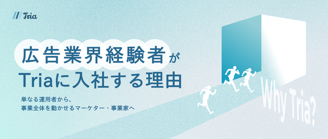 私たち株式会社Triaは、セプテーニ出身のメンバーが設立したマーケティング支援のスタートアップです。 AIやITの技術の活用は大前提として、最終的なビジネスの成功の大元は、"人"の熱量や努力に依存すると考えております。 だからこそ、"人"の力にこだわり、顧客ビジネスの成長に尽力をします。 こうした思想のもと、Web/SNS広告の媒体選定・運用からクリエイティブ制作までをワンストップで提供。クライアントのマーケティングチームに深く入り込み、KGIを見据えた戦略策定から実行・改善まで伴走します。