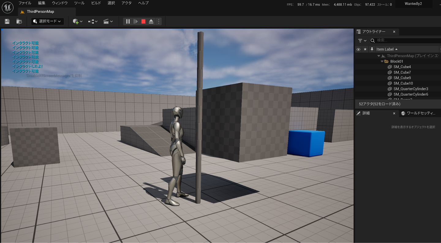さて、実際に前回の作成したインタラクト処理に設定します。