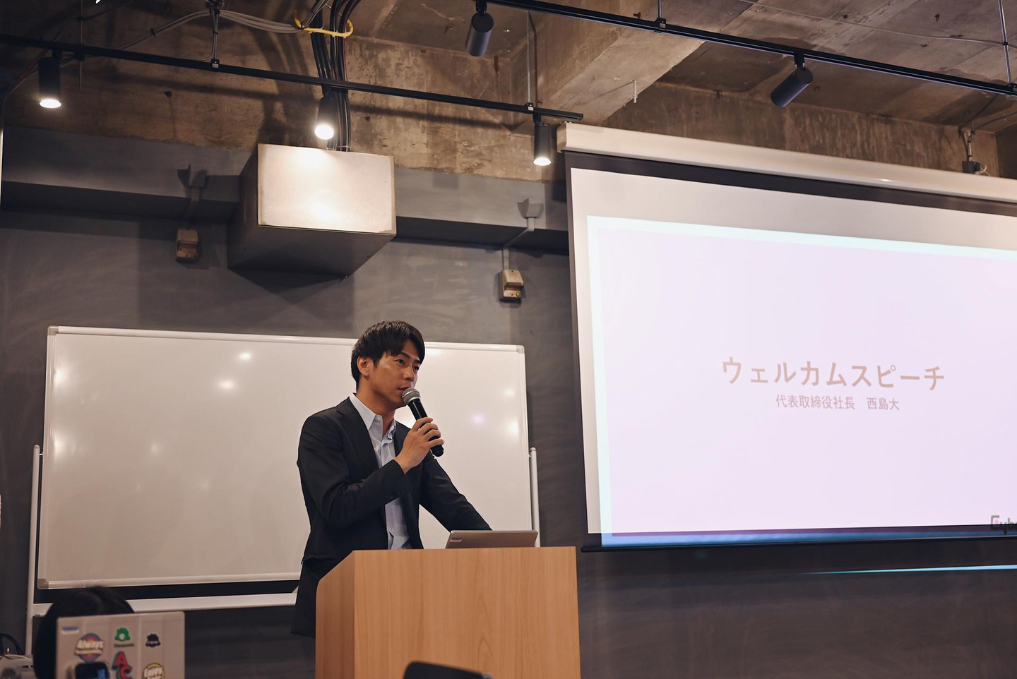 入社式の中では、代表取締役社長の西島から歓迎の言葉とともに、「新卒は存在が価値。まだまだ成長過程にいるACEに新しい風を!」と期待に溢れるメッセージをかけられていました。