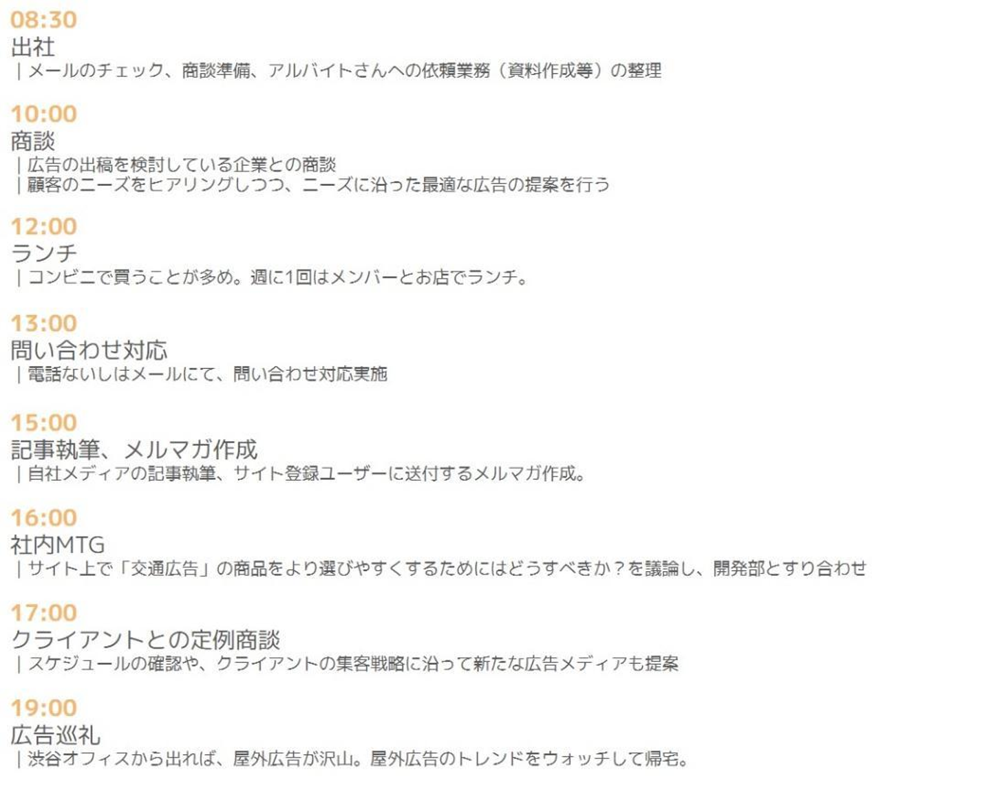 株式会社ビズパ, メディアプランナー 1995年新潟県生まれ。2018年に新卒で5,000人規模の大手食品メーカーに入社、地方の営業所で主に自社商品を提案・販売するセールス職を経験。 ...