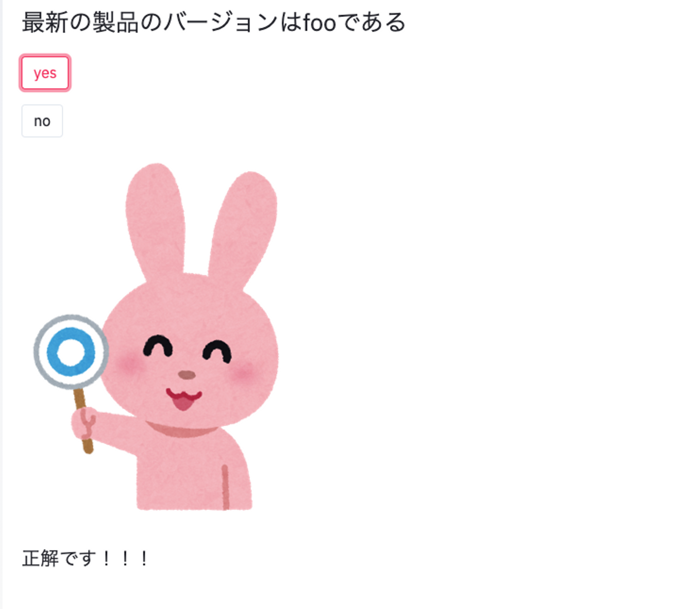 テキスト入力と○×クイズに対応しており、正解、不正解したときに以下のような画像が現れます。