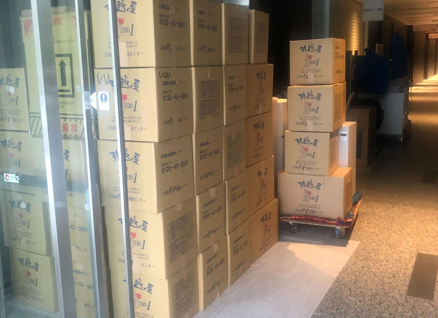 おびただしい数のダンボール。これは搬出時の写真ですが、これが新しいオフィスに届けられます。