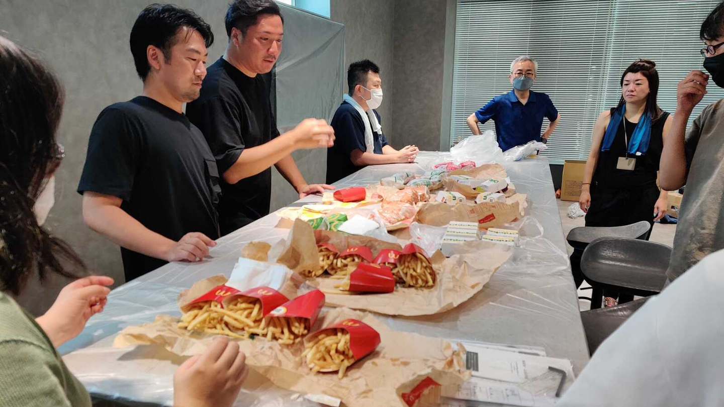 お昼はみんなでウーバーイーツで頼んだマックを食べます。ドリンクが1つも届かないという想定外のハチャメチャハプニングが発生しましたが、ともあれ20人分のマックを運んでくれた配達員さん、どうもありがとうございました。
