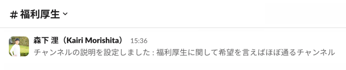 ▼Slackの福利厚生チャンネルには社長が設定したこんな説明も(笑)
