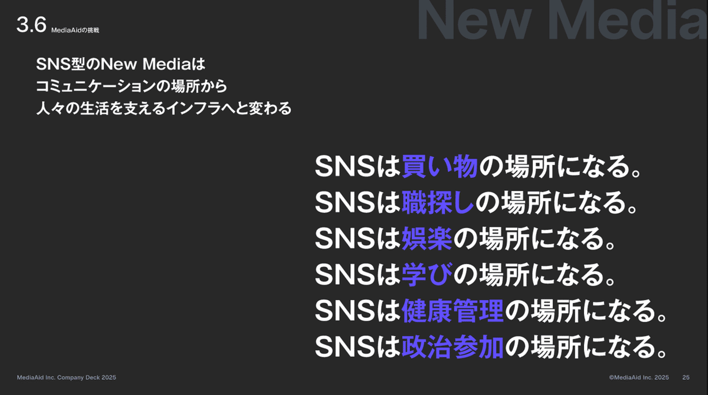 このSNSバズらせ屋界隈は、「自分の自慢をする」、自分に矢印が向いている人が多い界隈ではありますが、メディアエイドは情熱を持ってビジネスにコミットする、生活者やクライアントに貢献していきます。