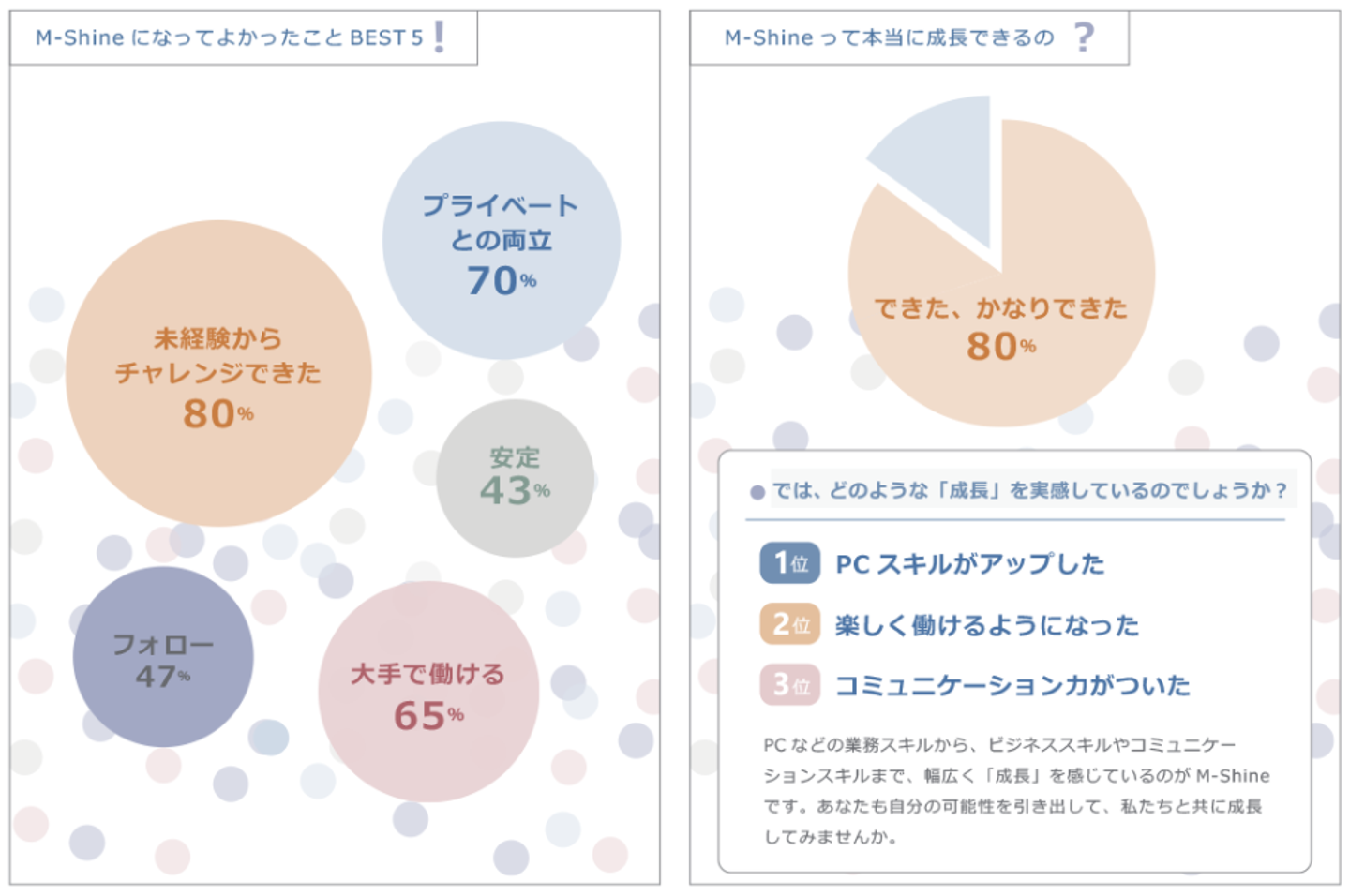 今回募集しているM-Shine(エムシャイン)サービスとは、マンパワーグループの社員として入社し、安定した雇用のもと、当社が契約する企業で働く、新しい働き方です。