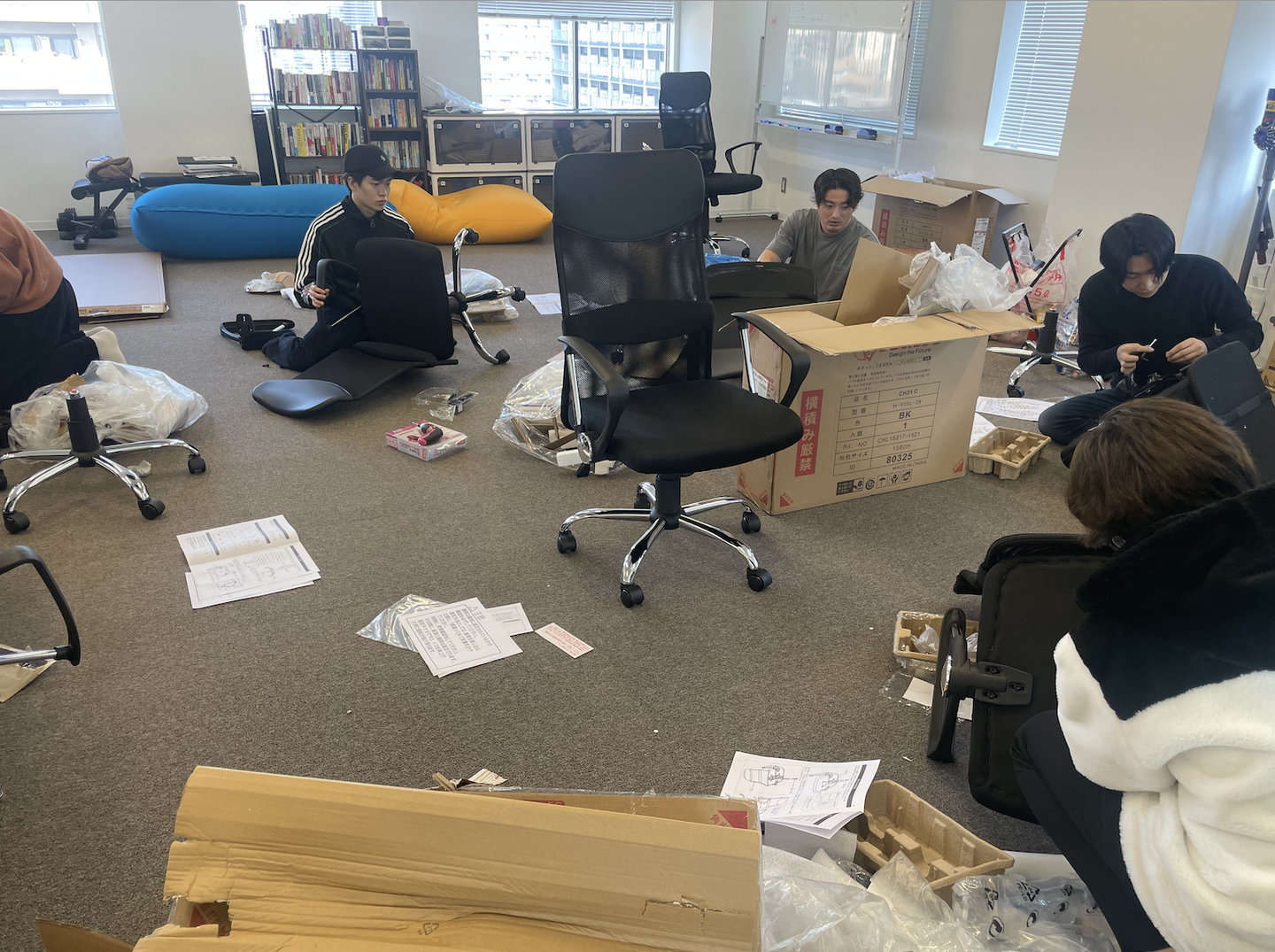 知り合いの会社のマンションの一室から始まり、今ではオフィスの広さは3倍。オフィスにはインターン生含め、10人近くのメンバーが出入りするようになりました。