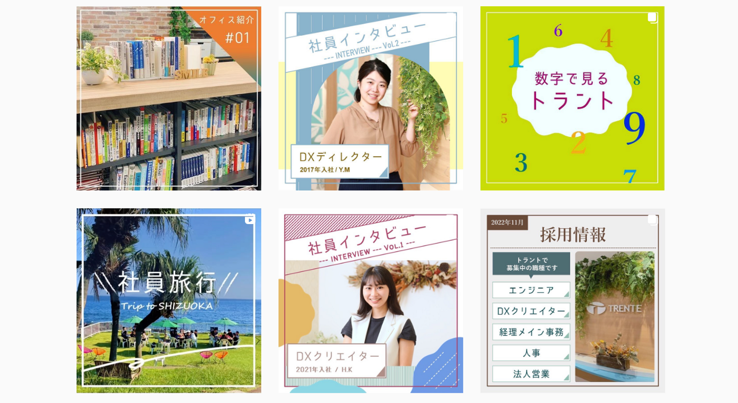 そんな採用チームの切実な思いから、インスタでは、様々な角度から見たトラントのあれこれを紹介しています!