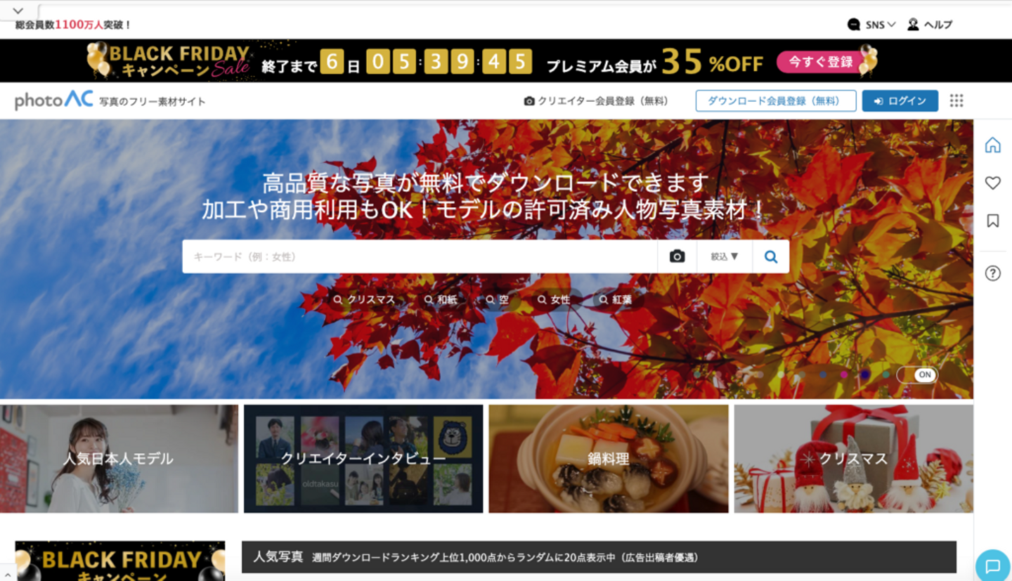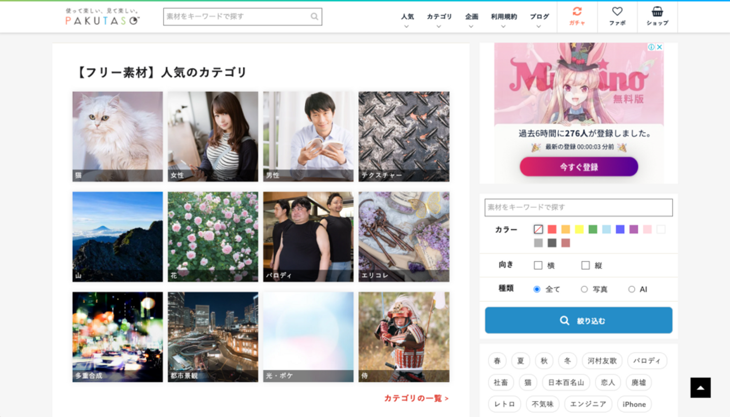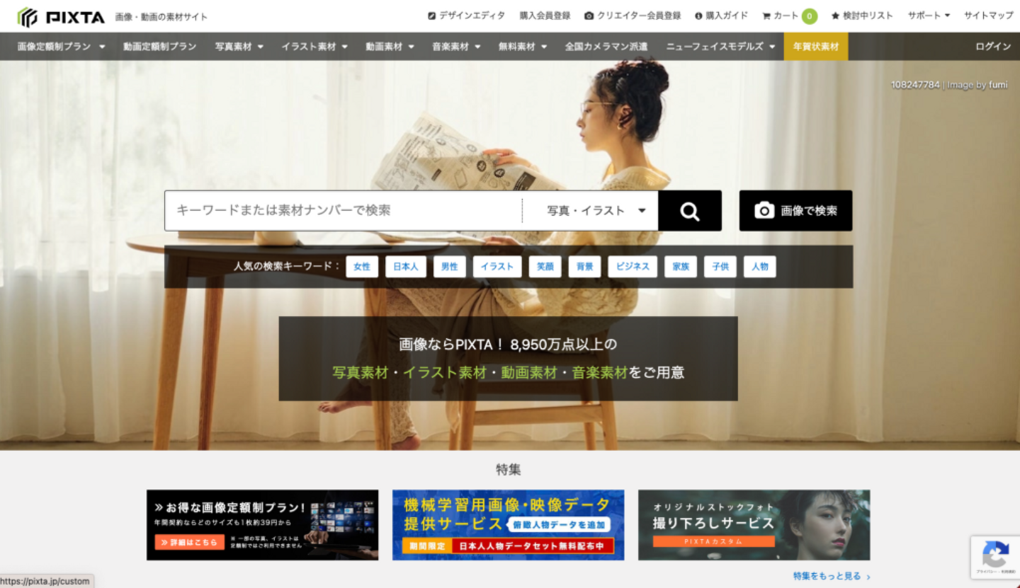 国内サイトなのでユーザーも日本人が多く、日本の素材や人物画像が欲しい時におすすめです。