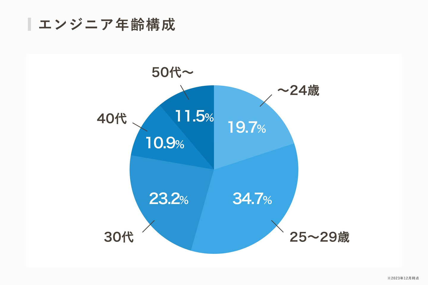 若手からベテランまで幅広い世代のエンジニアが活躍しています。ライフステージやキャリアの変化に応じた柔軟なサポート体制が整っており、安心して長く働ける環境が魅力です。