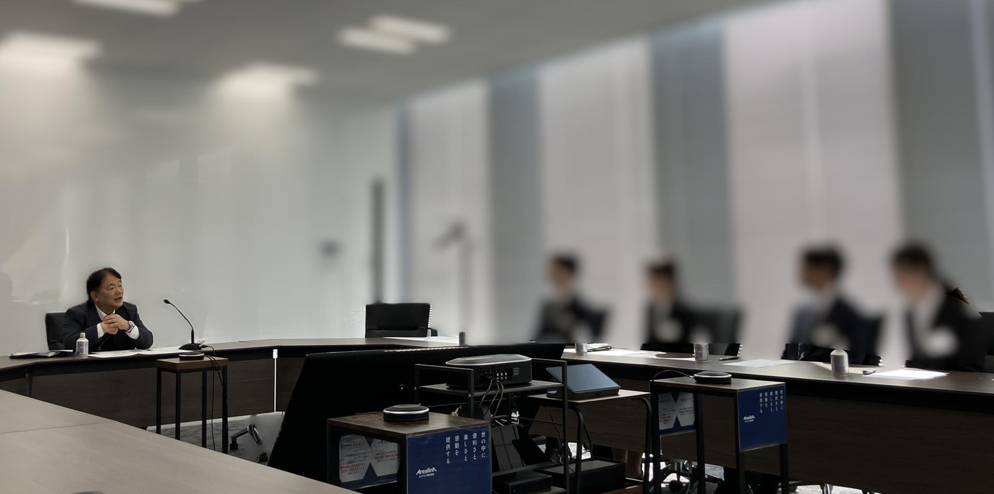 会場では元住友商事常務である井上顧問と、入社3年目で重大プロジェクトを率いる浦が、学生たちの疑問に正面から向き合いました。