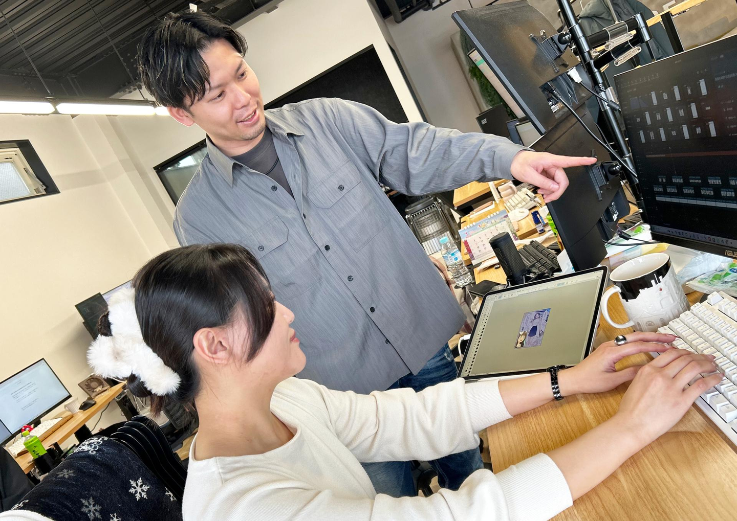 などなど…手探りで何もわからない状態でしたが、先にイラストの仕事をしていた先輩や代表の西田に色々なことを教わりながら、少しずつ色んな事を覚えていきました。